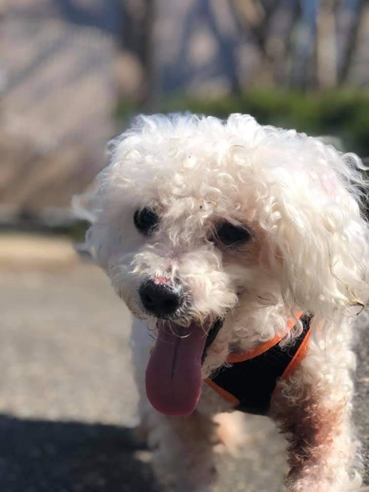 Blizzard is a 12-year-old Poodle mix. Although a senior, Blizzard still has lots of pep in his step! He loves walking and seeing new places, and also enjoys just hanging out and relaxing, especially on his people's laps.