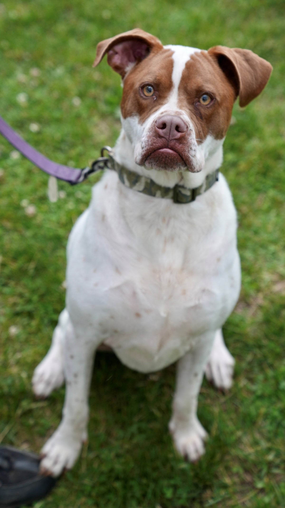 Hooch is a 3-yea-old Stafford Terrier mix up to date on all his shots and neutered. Hooch loves everyone especially if you have treats, but can be shy with other dogs. Hooch is still in puppy phase, working with trainers on basic commands.