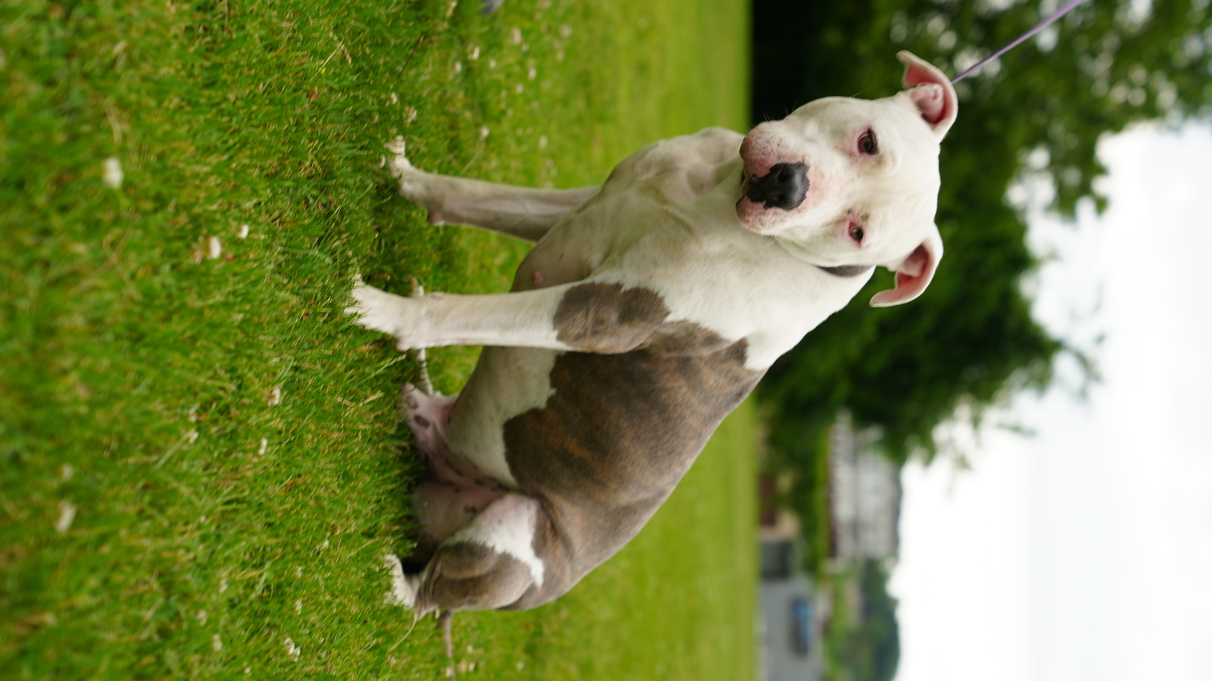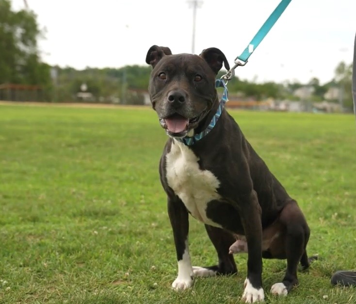 Hooch is a 3-yea-old Stafford Terrier mix up to date on all his shots and neutered. Hooch loves everyone especially if you have treats, but can be shy with other dogs. Hooch is still in puppy phase, working with trainers on basic commands.