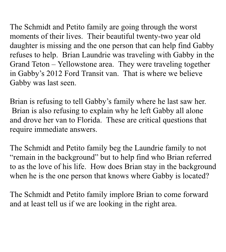 The Petito family issued a statement, saying they “beg the Laundrie family to not remain in the background.”