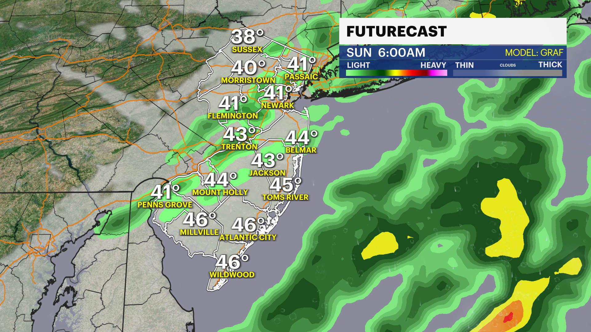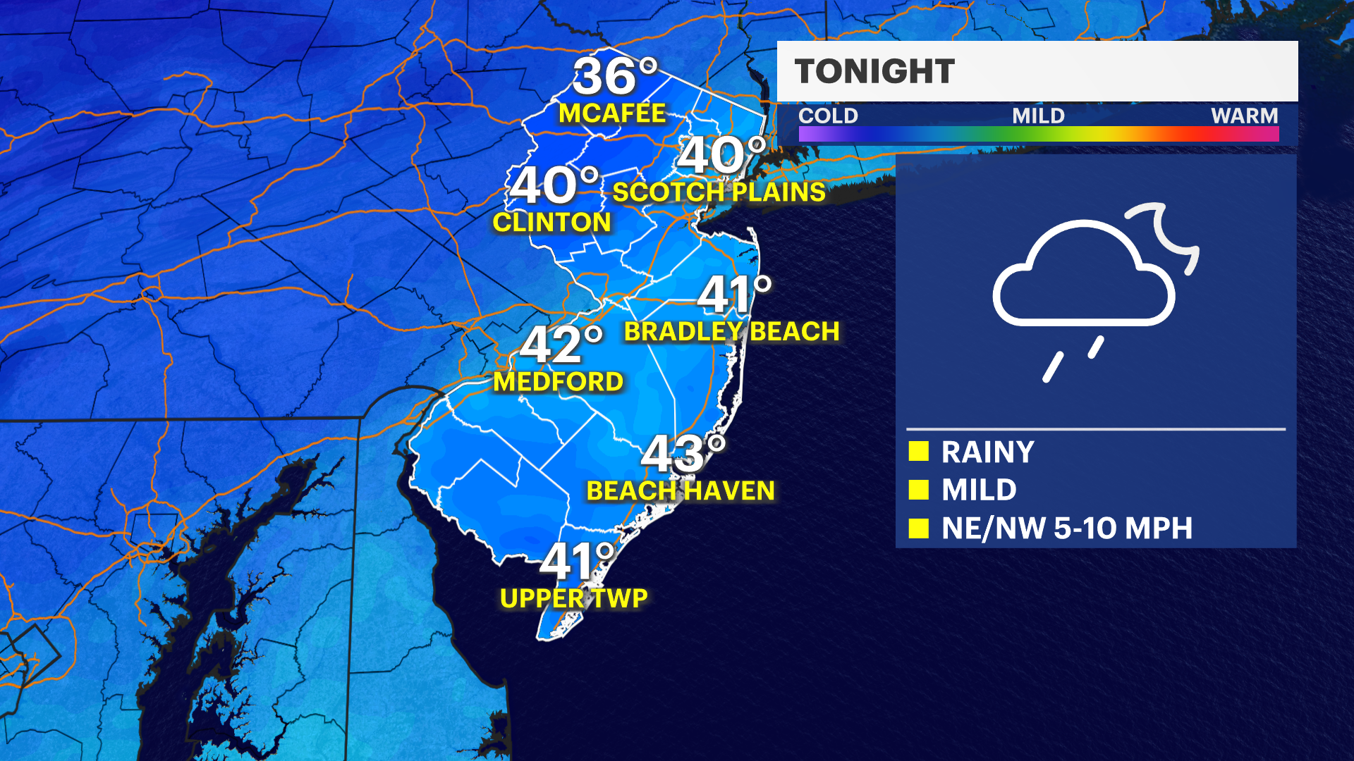 TONIGHT: Showers. Low of 42.