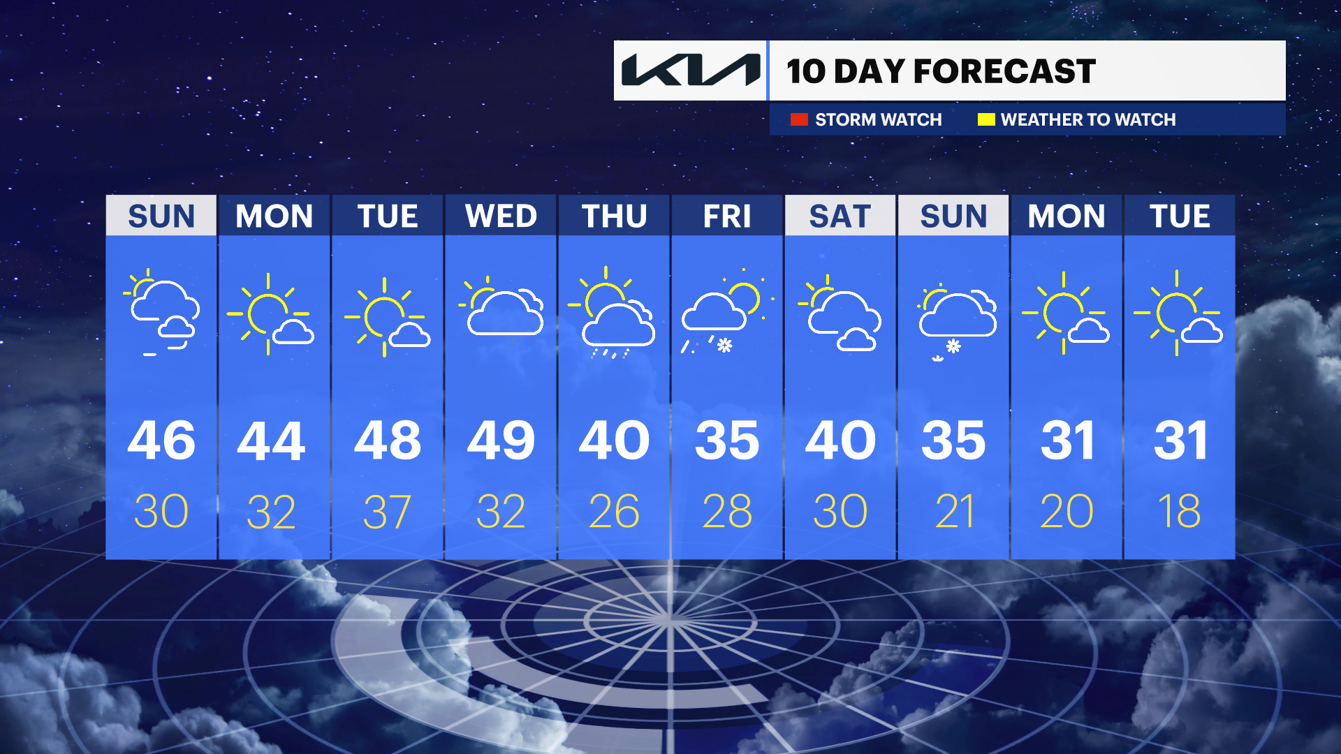 TUESDAY: Mostly sunny & seasonal.