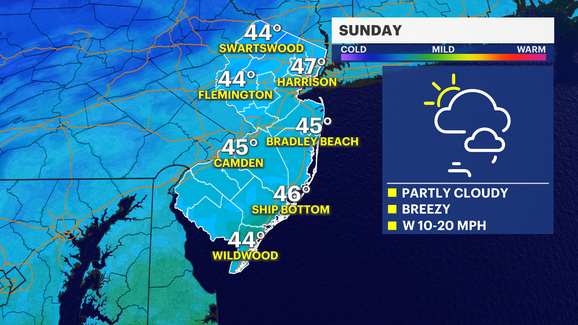MONDAY: Partly sunny and breezy.