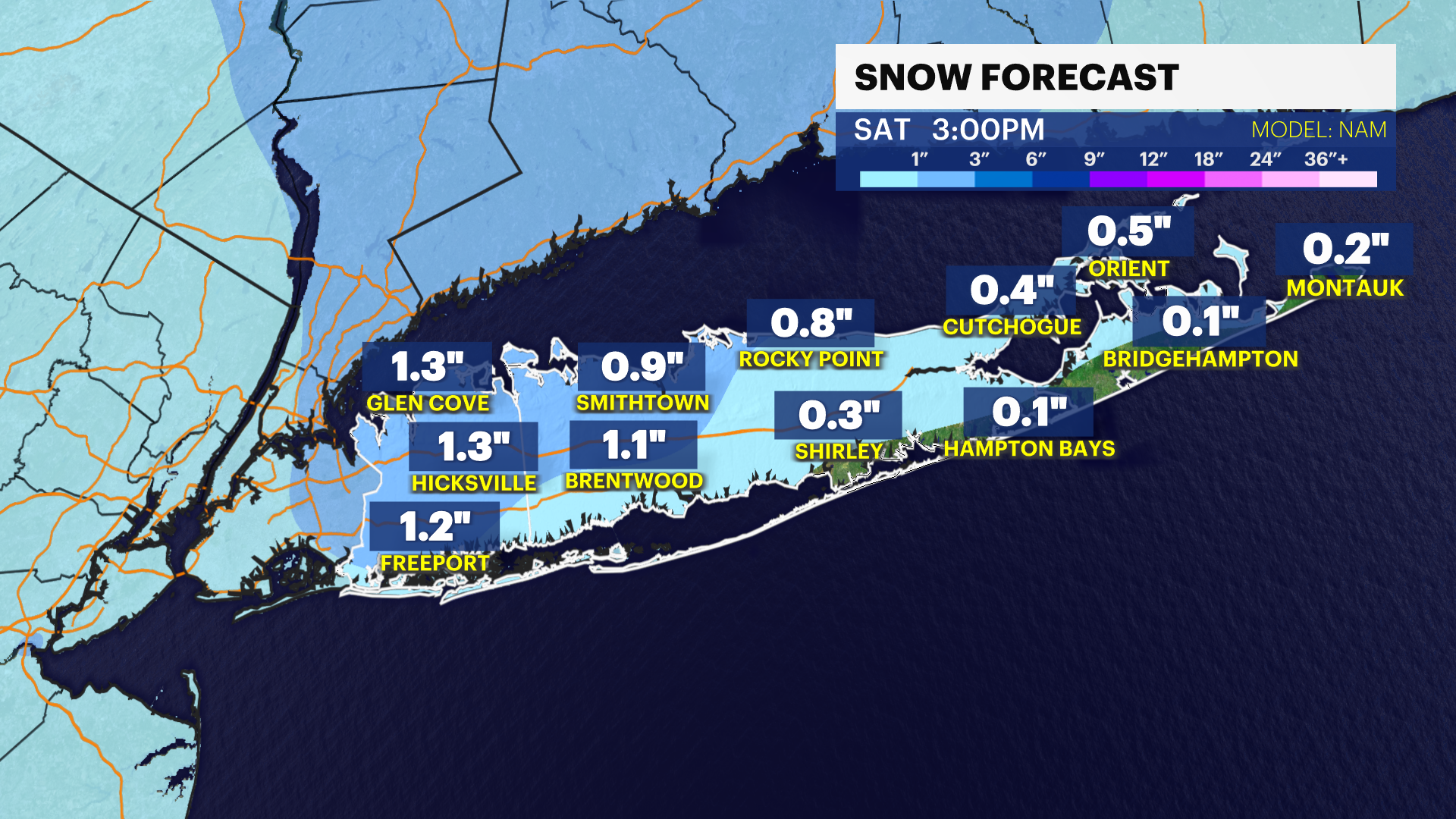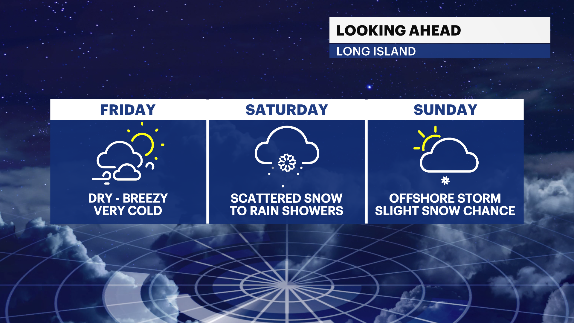 WEEKEND WEATHER: There are some new updates on Saturday and Sunday's weather. There is now the chance for around a coating to 1" of snow on Saturday. There will be snow showers developing after midnight Friday night. Expect snow showers off and on Saturday that should mix with and change to rain showers into the afternoon, especially south of the Long Island Expressway. Slippery spots cannot be ruled out. Highs will be in the upper 30s to low 40s.