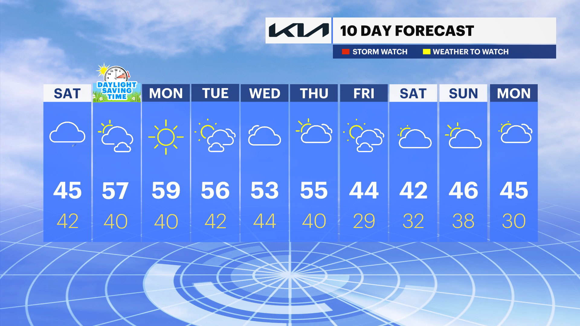 DAYLIGHT SAVING TIME BEGINS: Don't forget, the clocks will "spring forward" 1-hour tonight after 1:59AM for Daylight Saving Time.