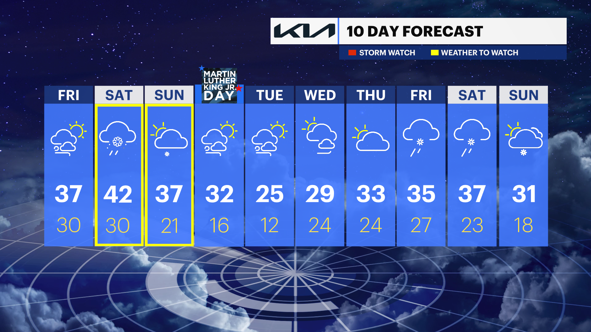 For Martin Luther King, Jr. Day on Monday and all of next week, expect cold weather with some mixed rain and snow chances returning next Friday and into next weekend.