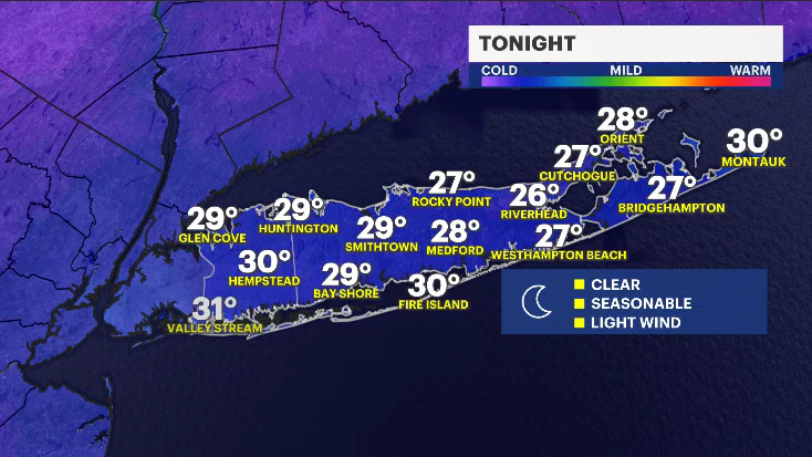 Clouds will increase tonight. Low temperatures are in the upper-20s.