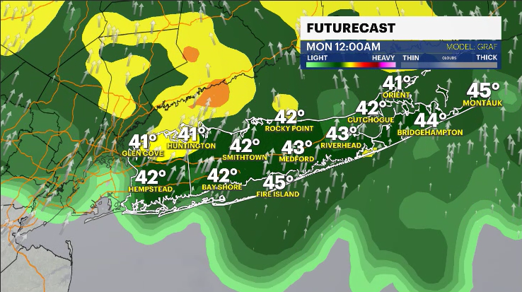 SNOW TOTALS: Expect a general 4 to 8 inches of snow across most of Long Island. Two variables, however, can alter this a little. First, there is a chance some sleet that can mix in along the South Shore of Long Island. This would keep the South Shore in the lower end of the forecast snow range. The News 12 Storm Watch Team is also watching where some heavier snow bands set up. There is the chance for 2 inches or more snow per hour where the heaviest banding occurs. Trying to predict exactly where those bands set up is like trying to predict the exact location of where a summer thunderstorm develops. These details only become clear as the storm unfolds. That said, most of Long Island is still expected to see the 4 to 8 inch range of snow.
