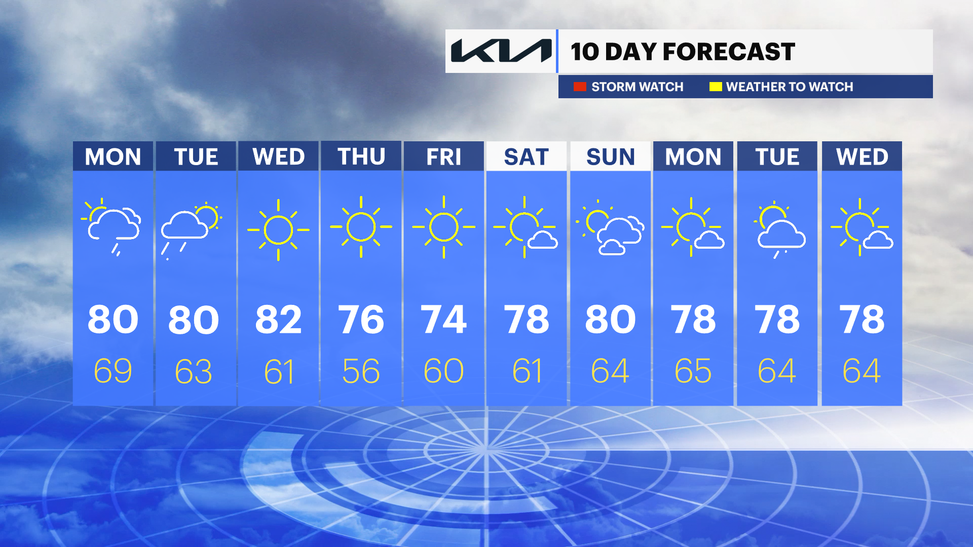 WEDNESDAY: Mainly sunny. Highs near 82. Lows near 61.