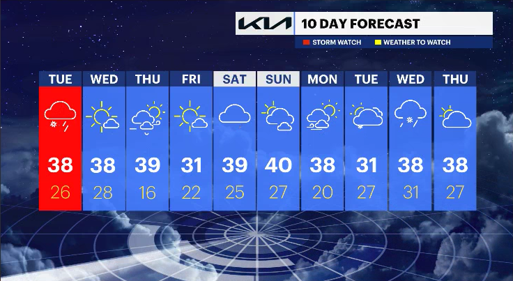 THURSDAY: Sunshine and clouds mixing in the skies, windy, and cold. Highs in the 30s. Lows in the teens.