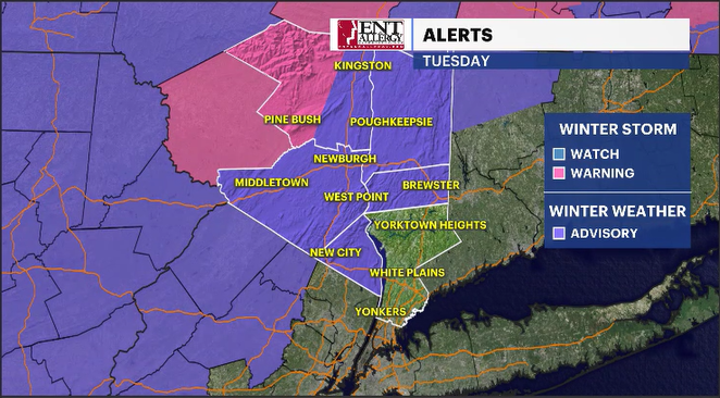 Winter Weather Advisory for Orange, northeast Ulster, Dutchess, Putnam and Rockland counties.