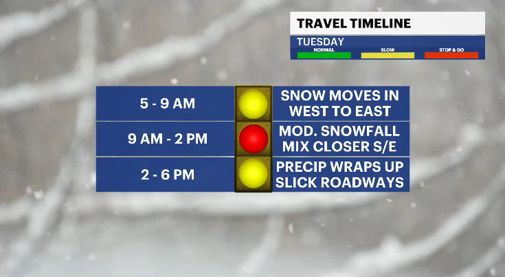For Tuesday morning, expect snow and a mix of snow and rain for most of the lower Hudson Valley. Southern Westchester will likely see more rain to begin the morning hours. As we approach the late morning, there will be a transition for most counties from snow to rain. Most of the snow accumulations will occur in the morning hours, as the transition to rain begins near noon and will clear out any accumulated snowfall for most areas.