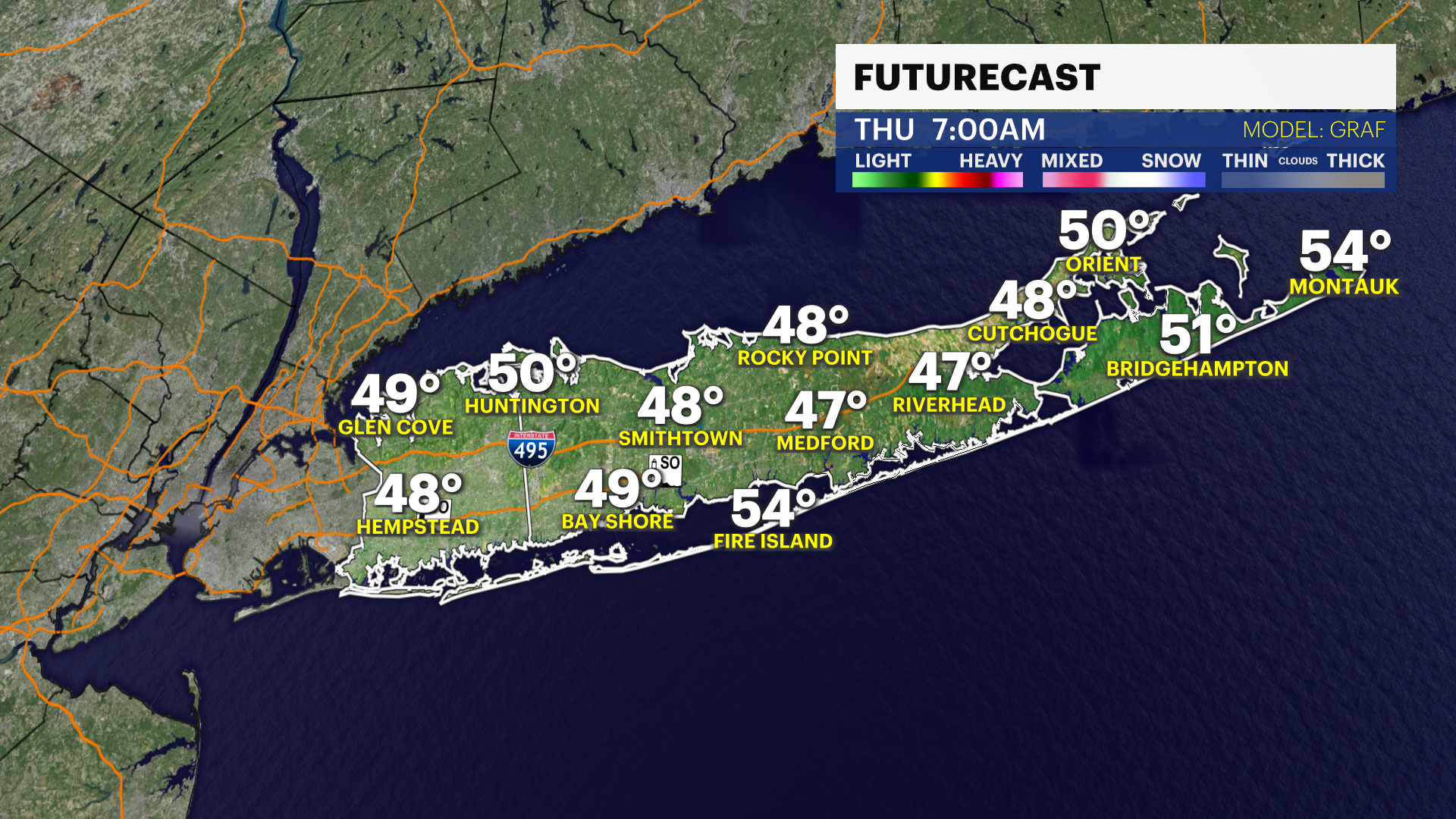 THURSDAY: Mostly Sunny. Tad cooler. Highs near 65.