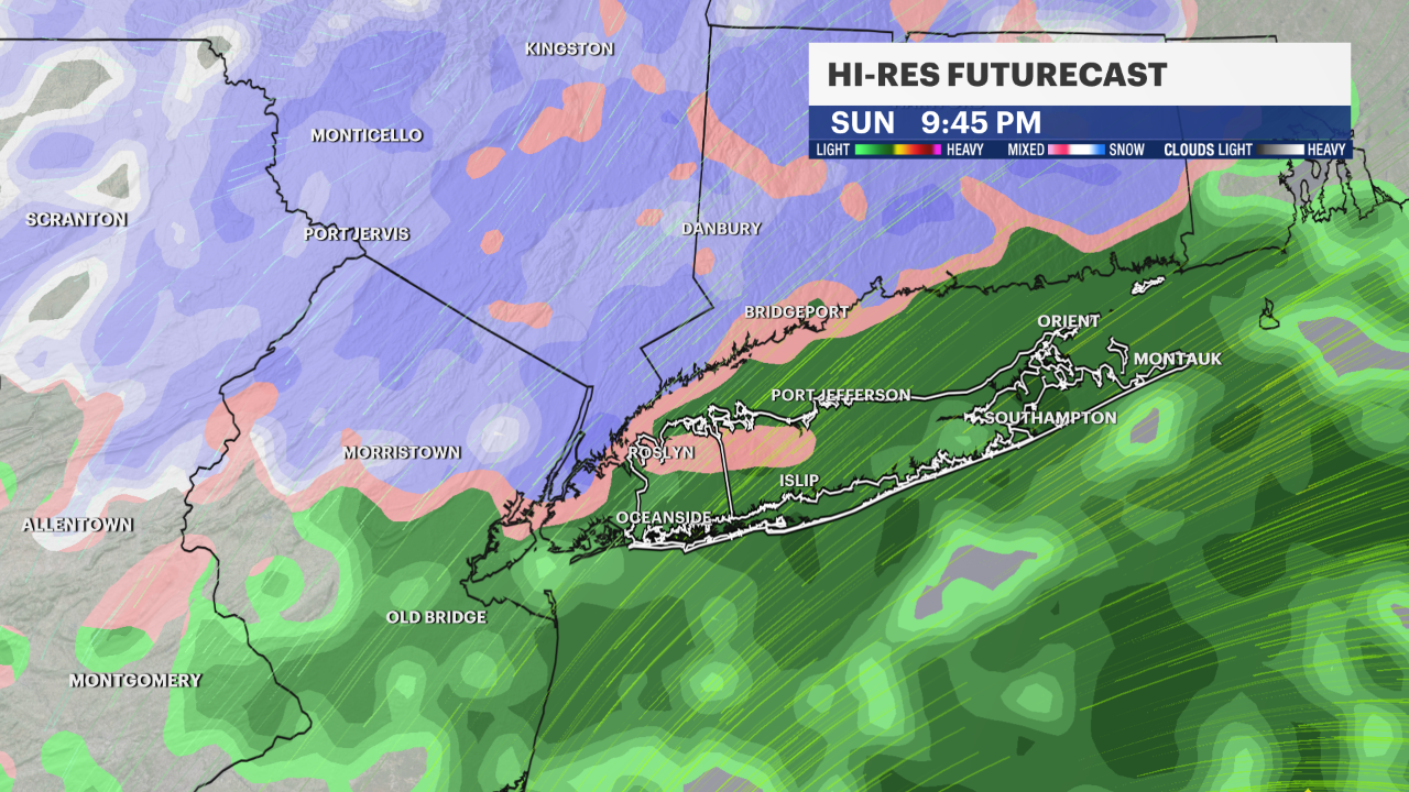 The same system is bringing some snowfall to colder areas further north and west of Long Island, in the Hudson Valley and Connecticut. News 12 meteorologists say we could see some brief mixing with sleet here on Long Island, especially spots in Nassau and northwestern Suffolk tonight, but we're not expecting accumulating wintry precipitation.