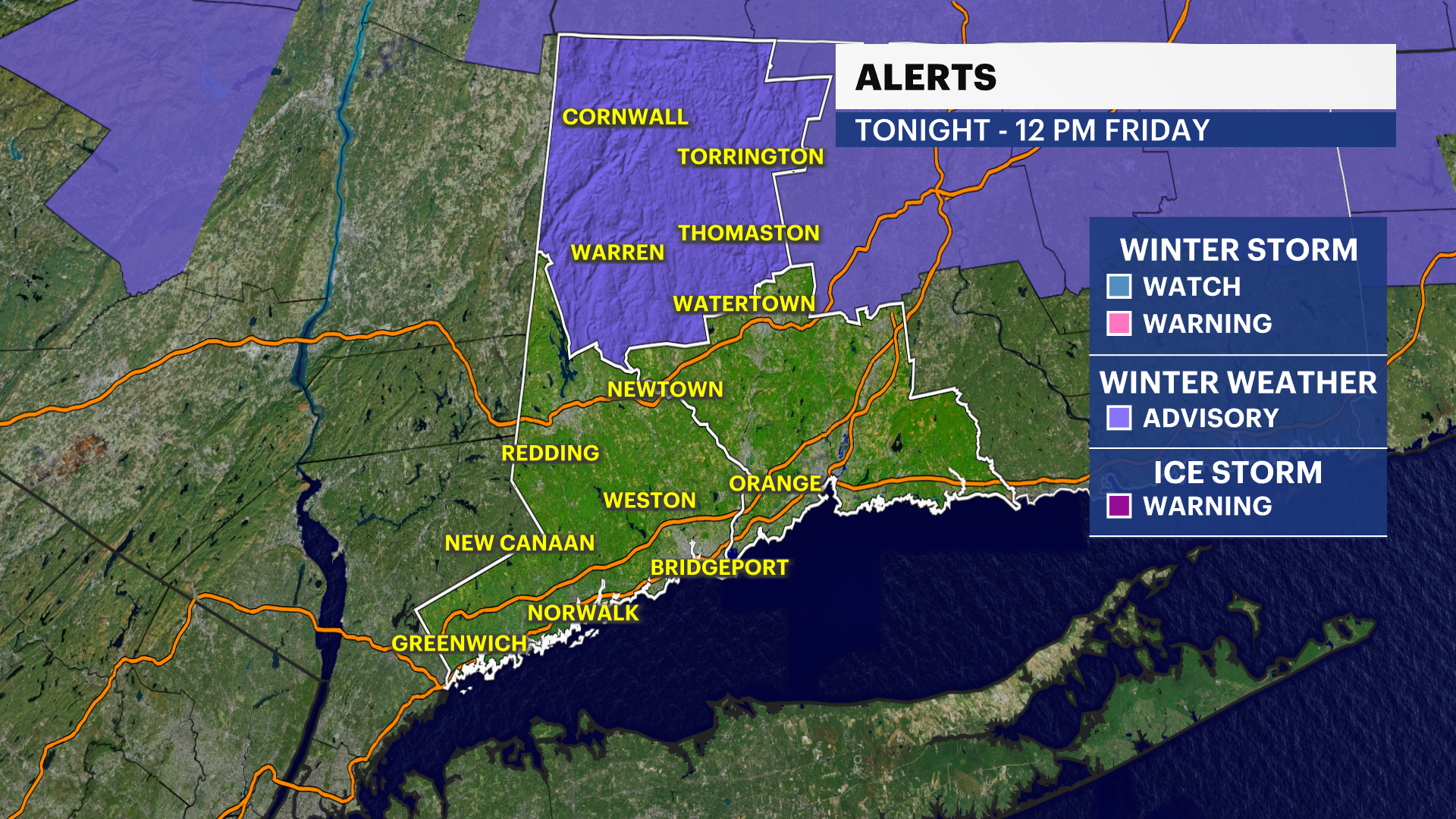 The National Weather Service has issued a winter weather advisory for Litchfield County starting tonight through noon on Friday. There is a risk of some minor snow and sleet, but ice could be the bigger issue. We could see one-tenth to one-quarter of an inch of ice.