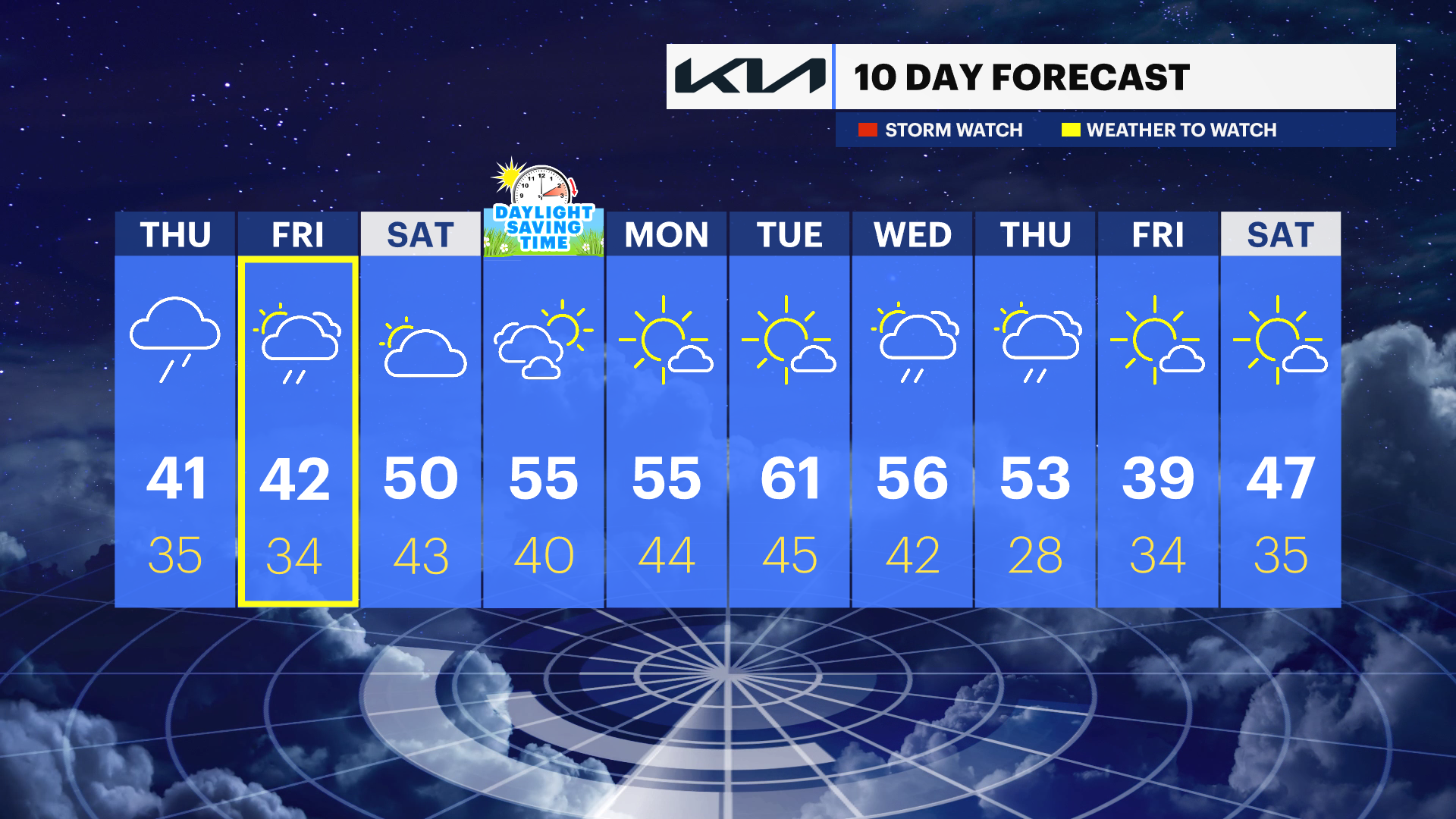 Up to 1 inch of rain will fall before it wraps up Friday morning. Temperatures will warm up much more over the weekend, highs will climb into the 50s and even near 60 degrees.
