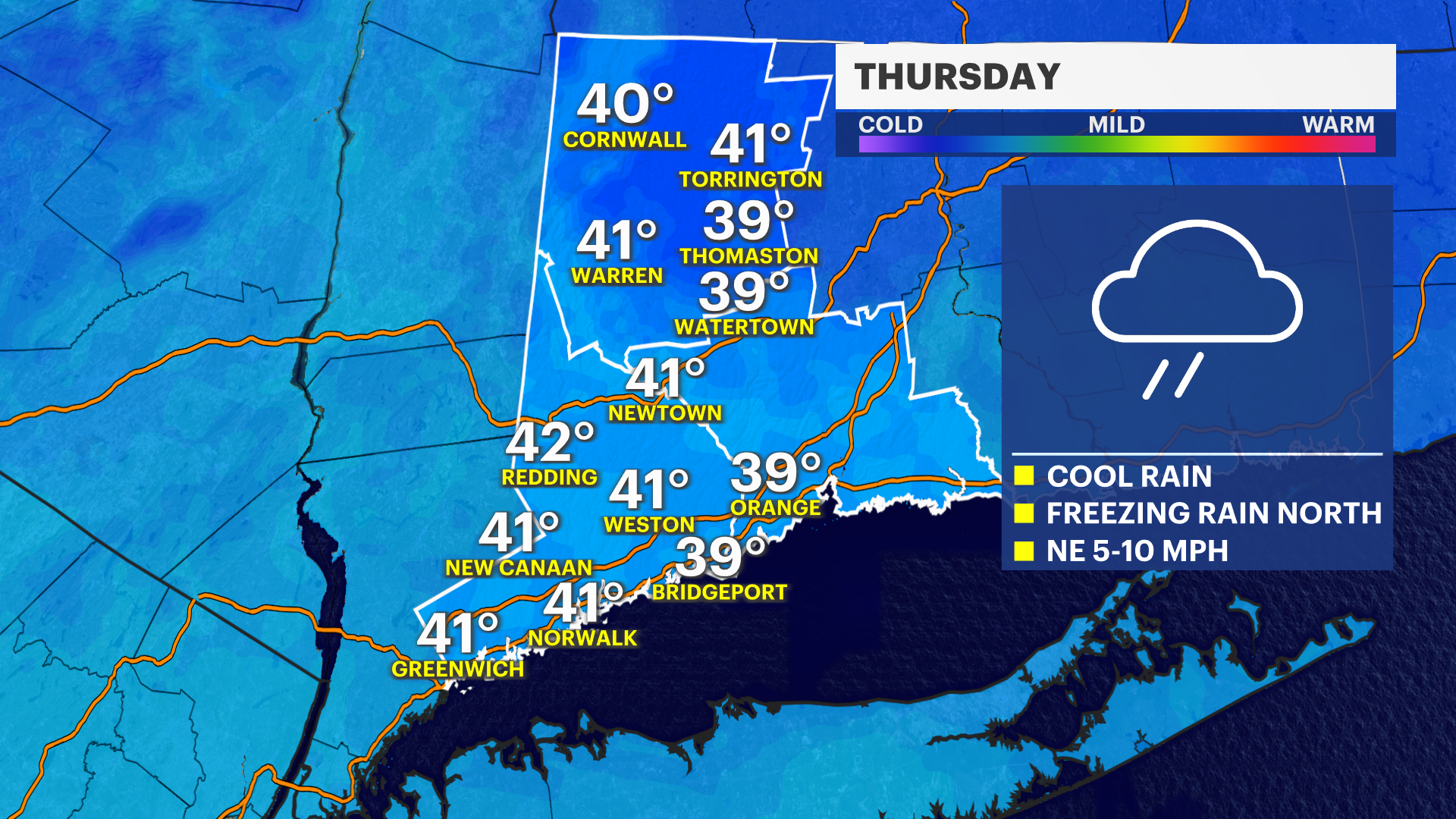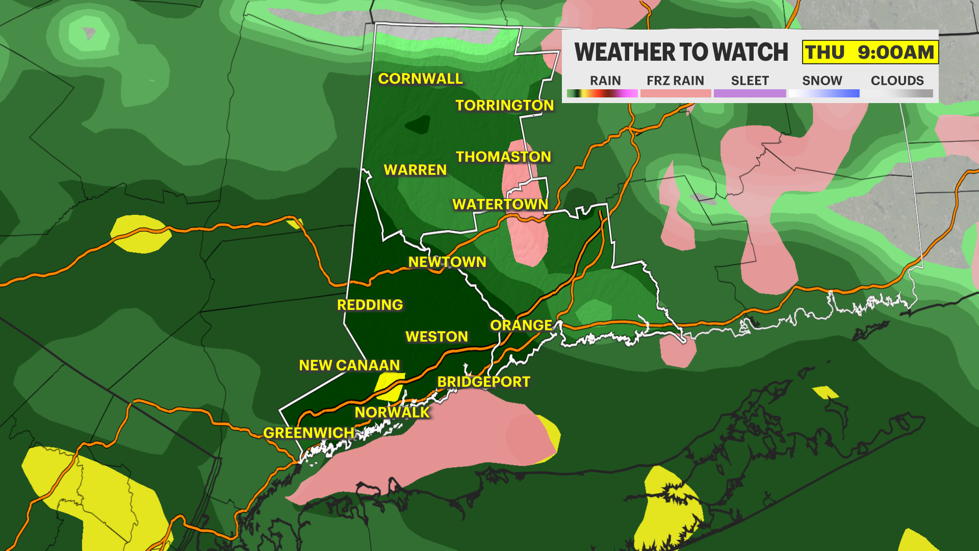 After a dry and sunny break, the wet and wintry weather will make a comeback on Thursday. Due to some colder, borderline freezing temperatures in Litchfield County, there is a wintry mix threat going into early Friday.