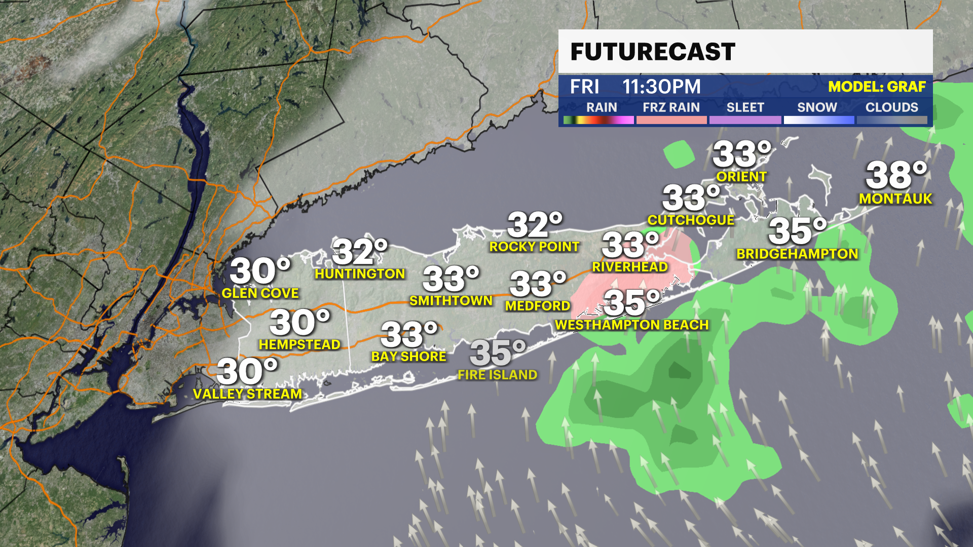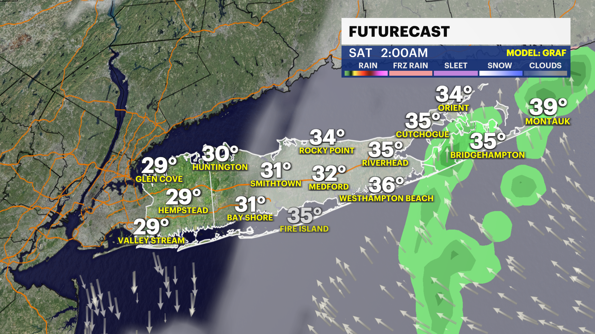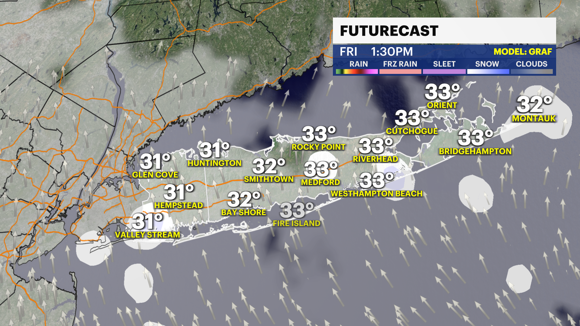 Saturday: A chance of snow and freezing rain before 8 a.m., then some light rain showers through noon. Be alert for some slick roads. Cloudy skies. High near 45. Light and variable wind becoming west 5 to 15 mph.