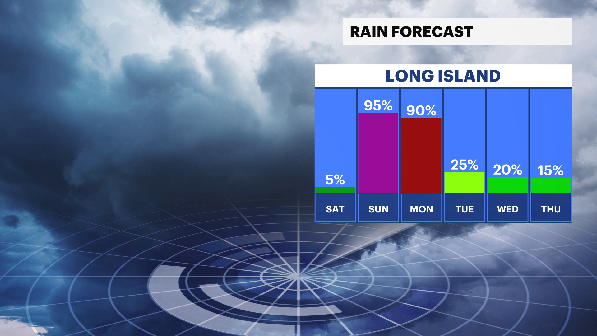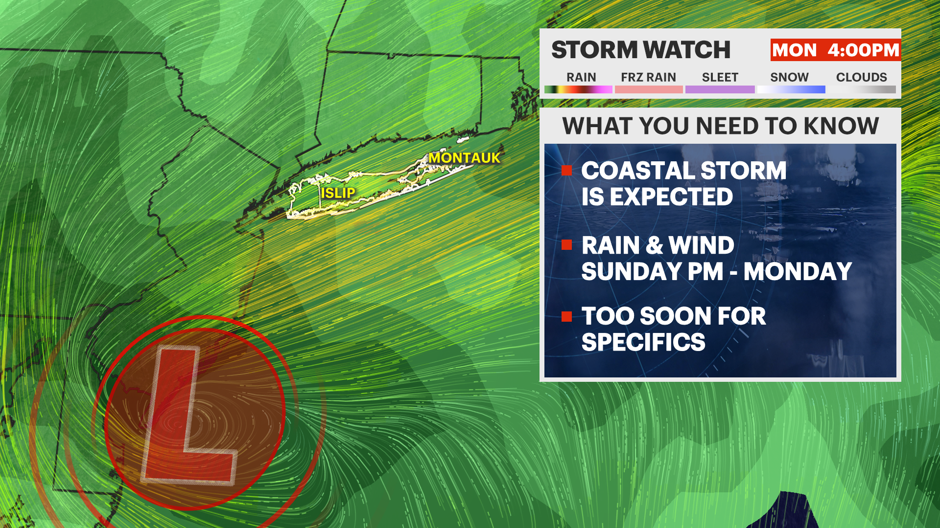 A coastal storm is expected to develop off the southeast coast at the end of this week and move northward close to our area this weekend. Rain and wind are expected on Long Island Sunday and Monday, but the severity is still not certain. However, the threat is growing for this to be an impactful storm that starts on Sunday afternoon and lingers through Monday.