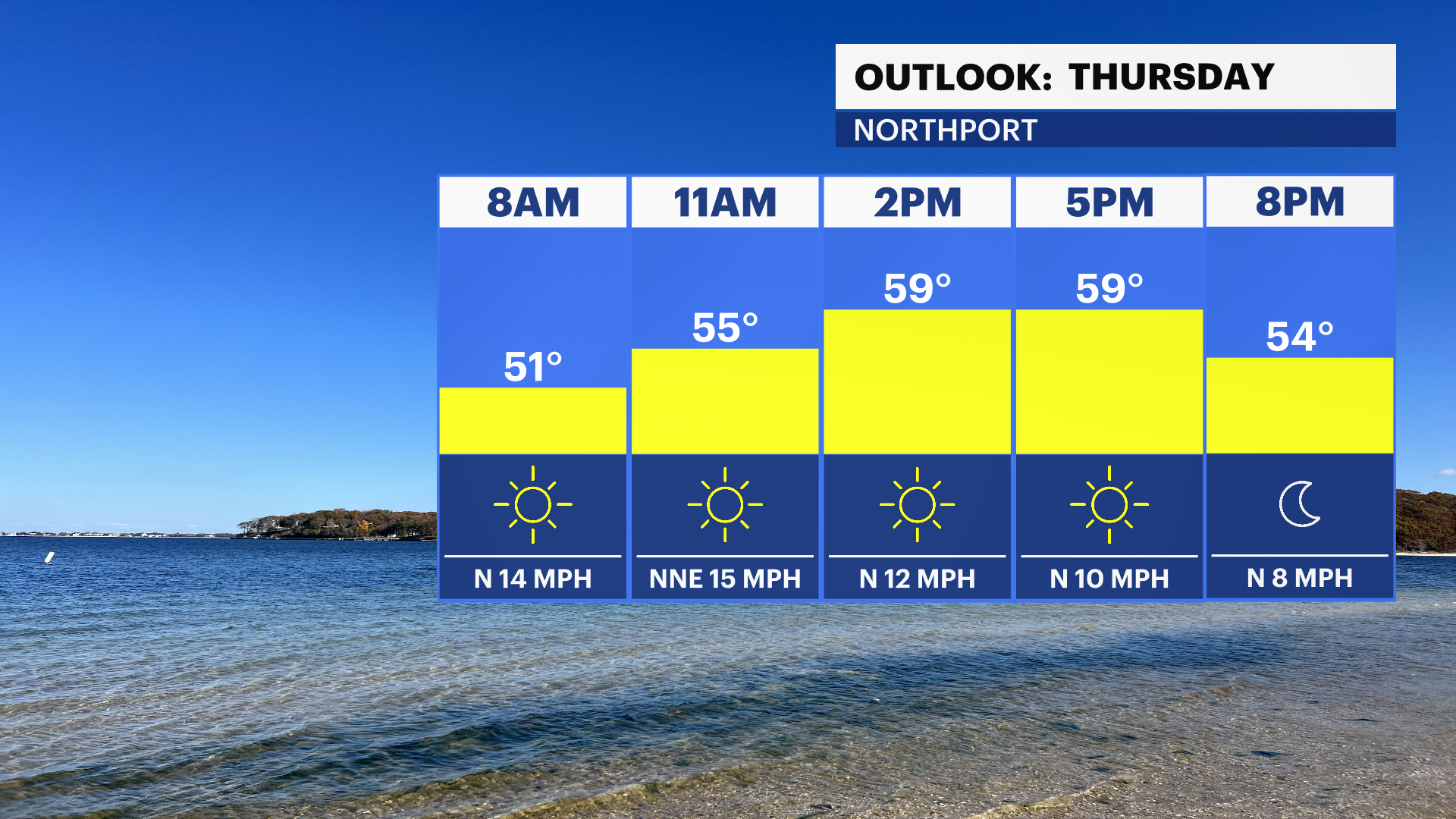 After a cool start, expect a seasonable day with temperatures in the mid-60s and just a few clouds.