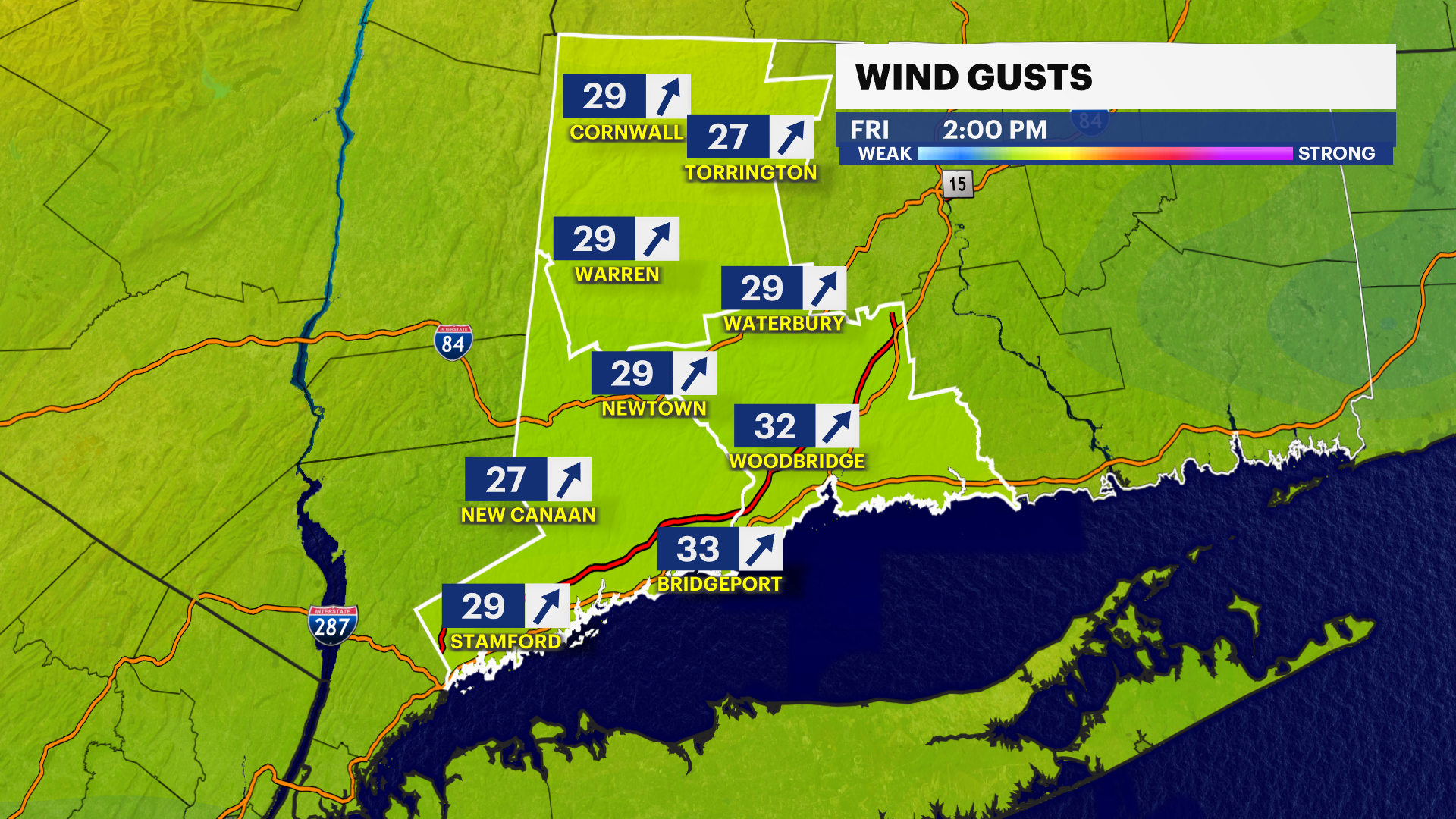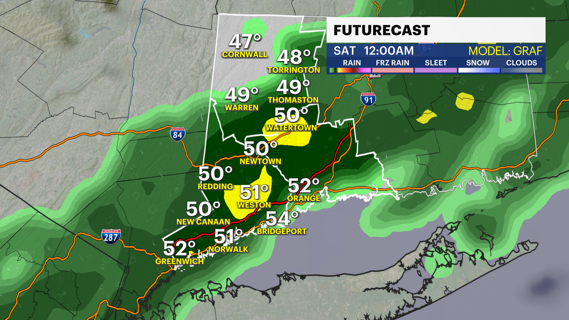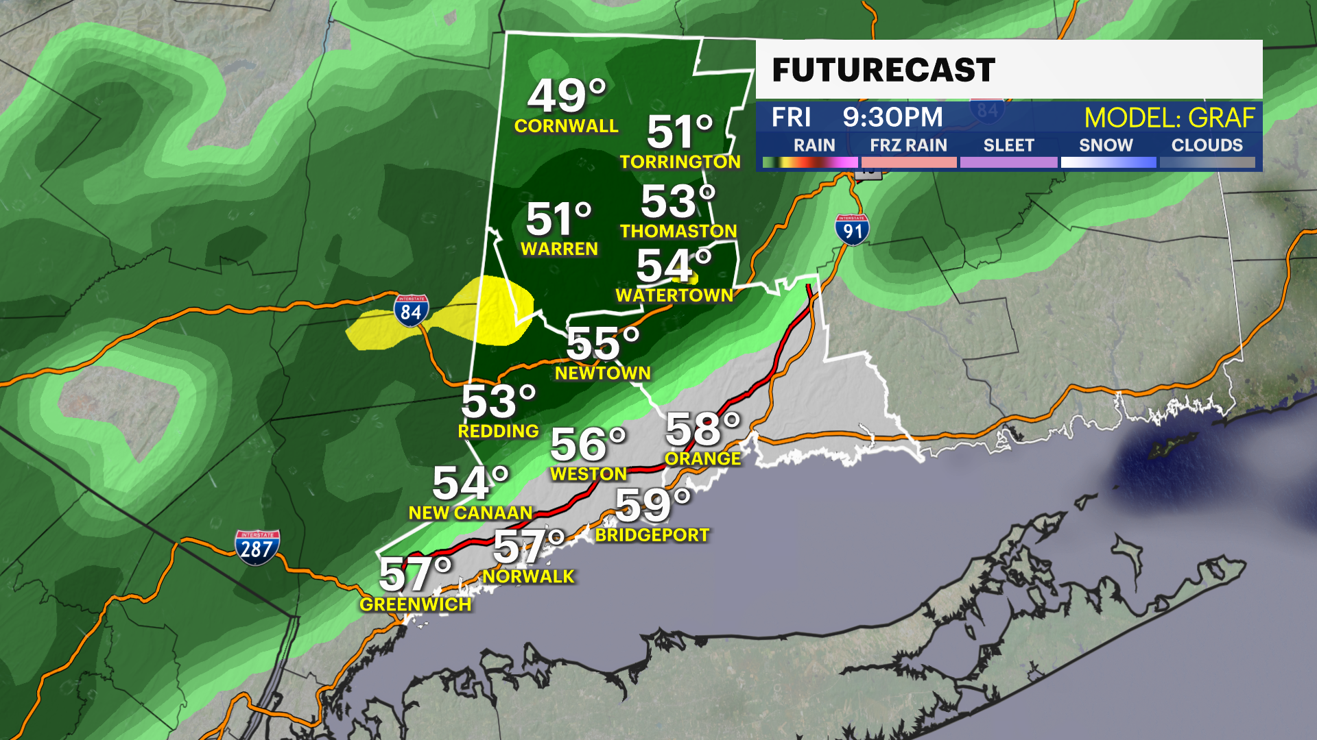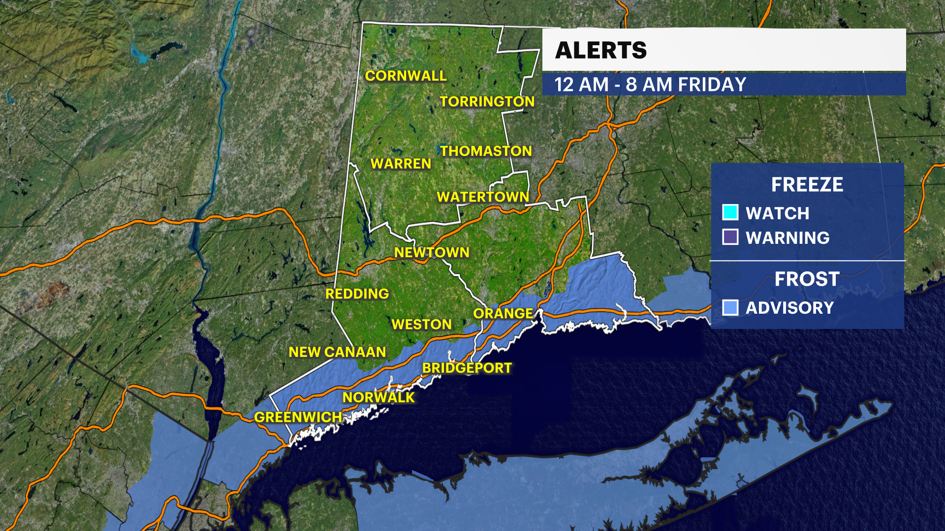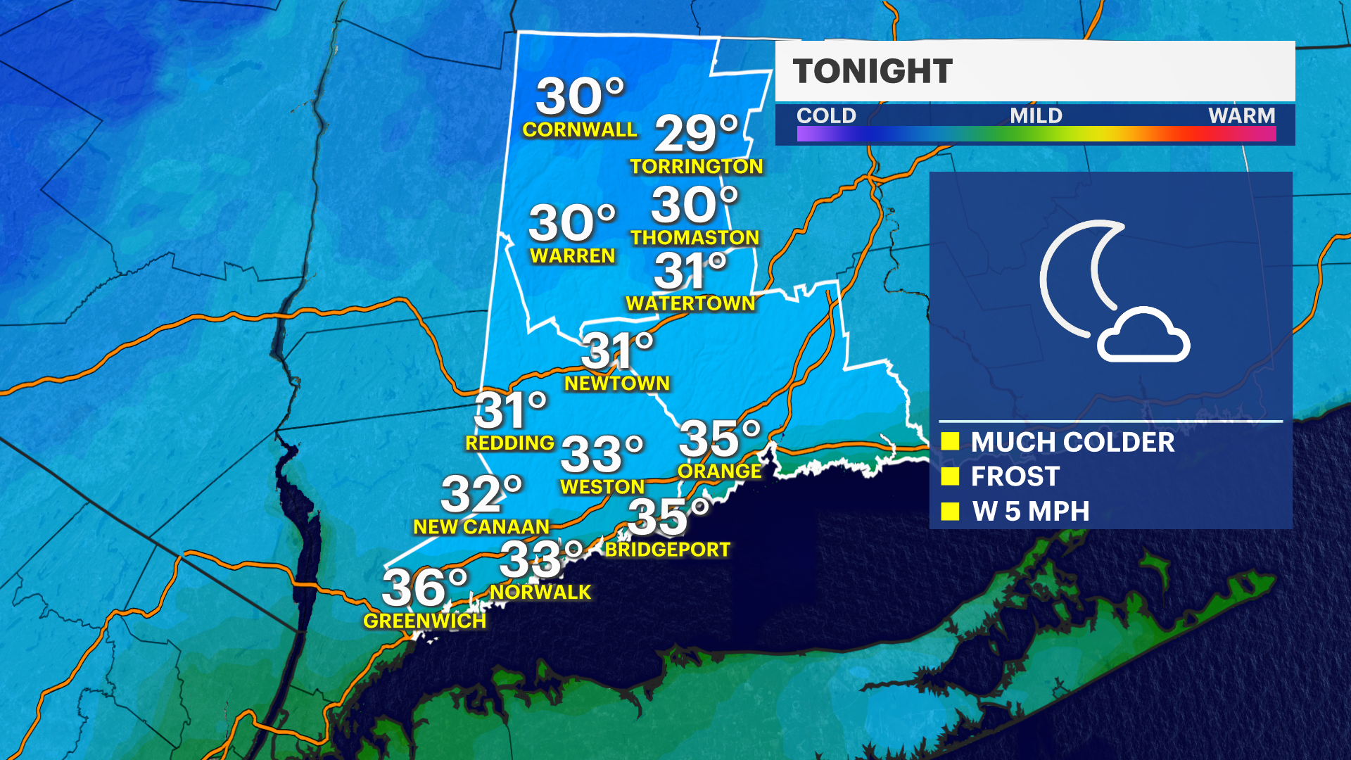 For areas that haven't seen the widespread frost - Southern Fairfield County along the I-95 corridor. Low temperatures will range from about 33-35 degrees and winds will be light.