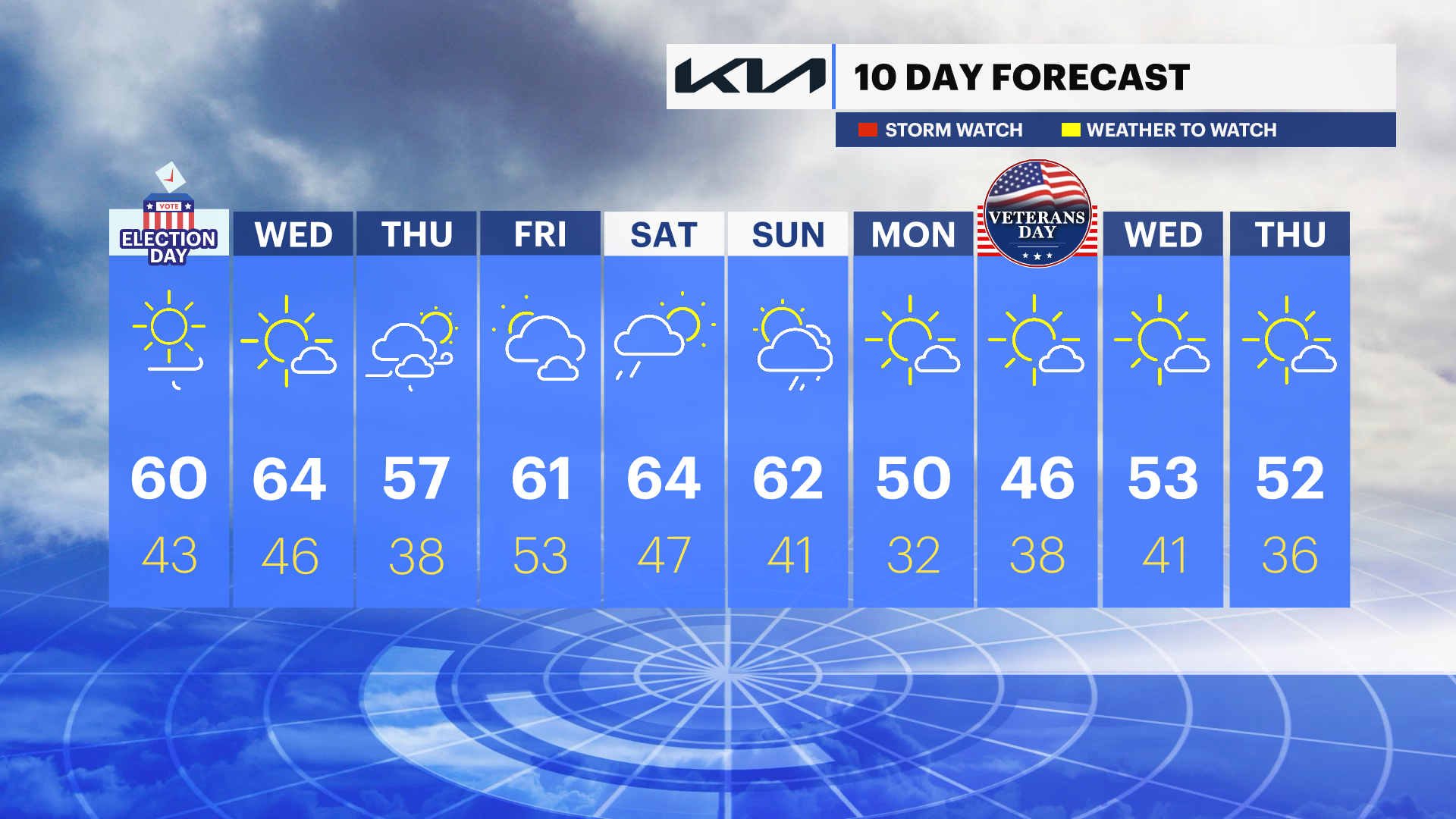 Sunday: Sunny breaks in the morning. Clouds with rain developing in the afternoon, with a high near 62.