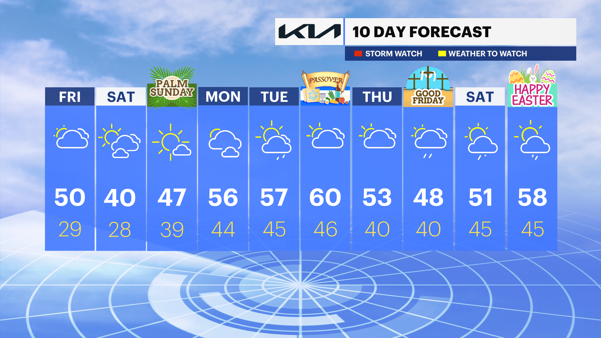 Heading into Friday, plan on a gray and somewhat unsettled start with morning rain and lingering clouds. As we move into the afternoon, the rain tapers off, but skies remain mostly cloudy. It will also turn a bit chilly compared to earlier in the week, with high temperatures only reaching the mid to upper 40s.