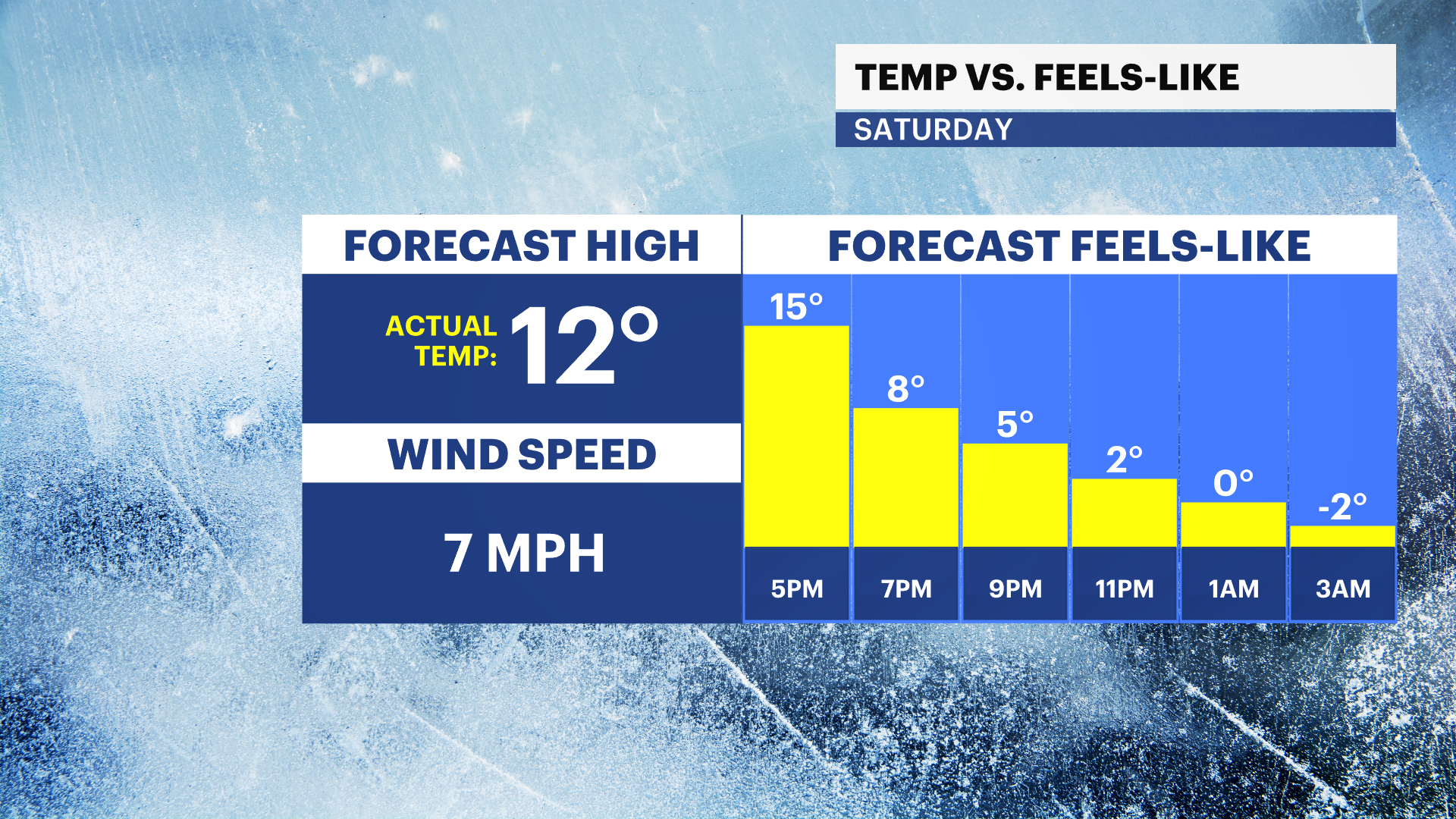 Overnight: Mostly clear, still cold, and breezy as wind gusts reach near 30 MPH. Low temperatures: Teens.