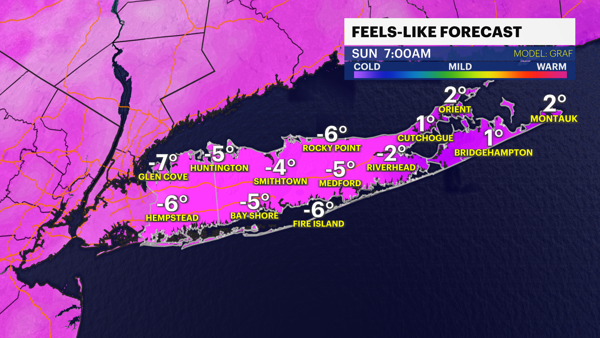 The streak of intense cold weather will continue through Monday for Long Island. However, there are some signs that the chill will be at least a little less harsh by Tuesday and Wednesday of next week.