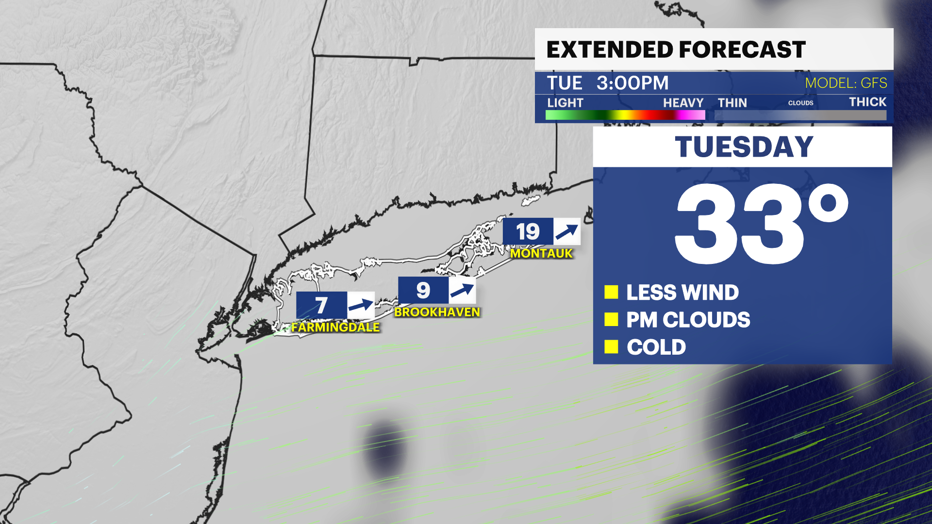 Arctic air rushes in overnight. Temperatures will drop into the mid teens across the island, perhaps colder in spots, with wind chills between 0F and 10F on Monday morning. Expect gusty winds up to 30 mph.
