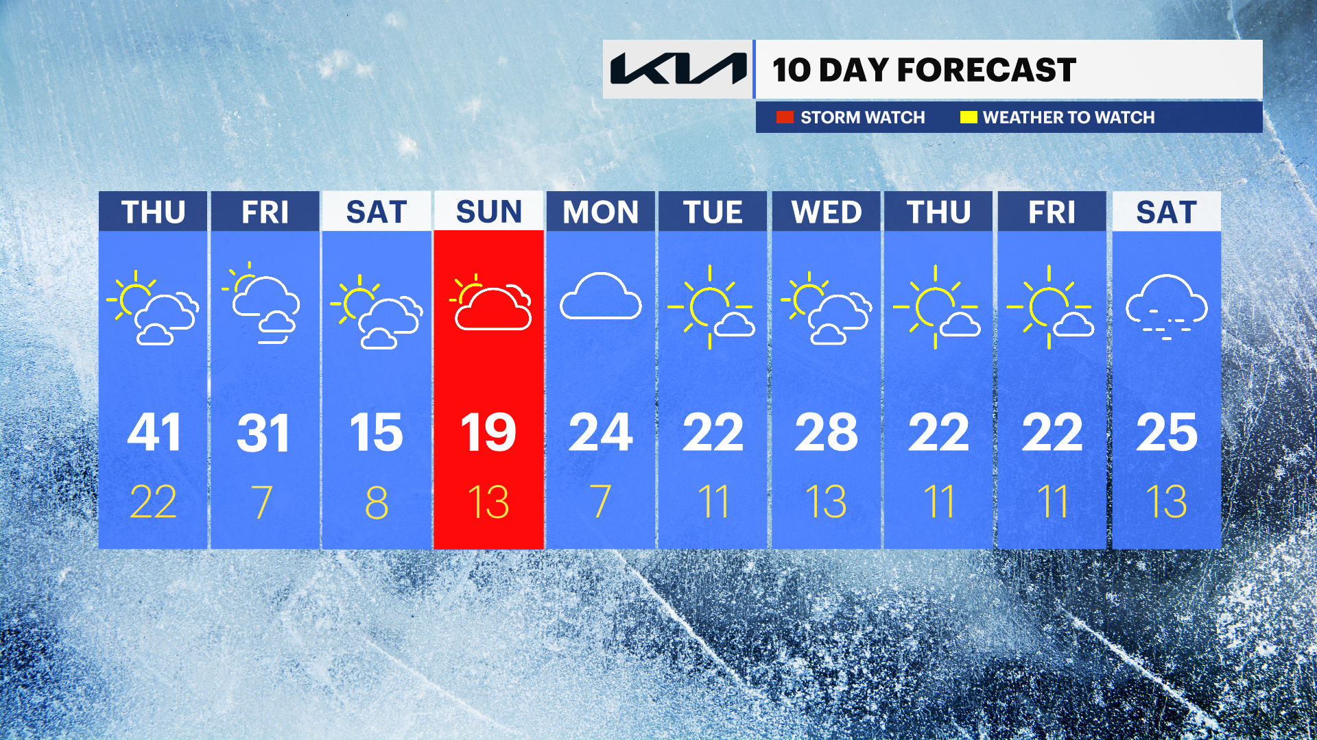 THURSDAY: PICK OF THE WEEK- A mix of sun and clouds with temps rising above seasonal levels. Highs: Upper 30s to low 40s. Lows: Upper teens to low 20s.