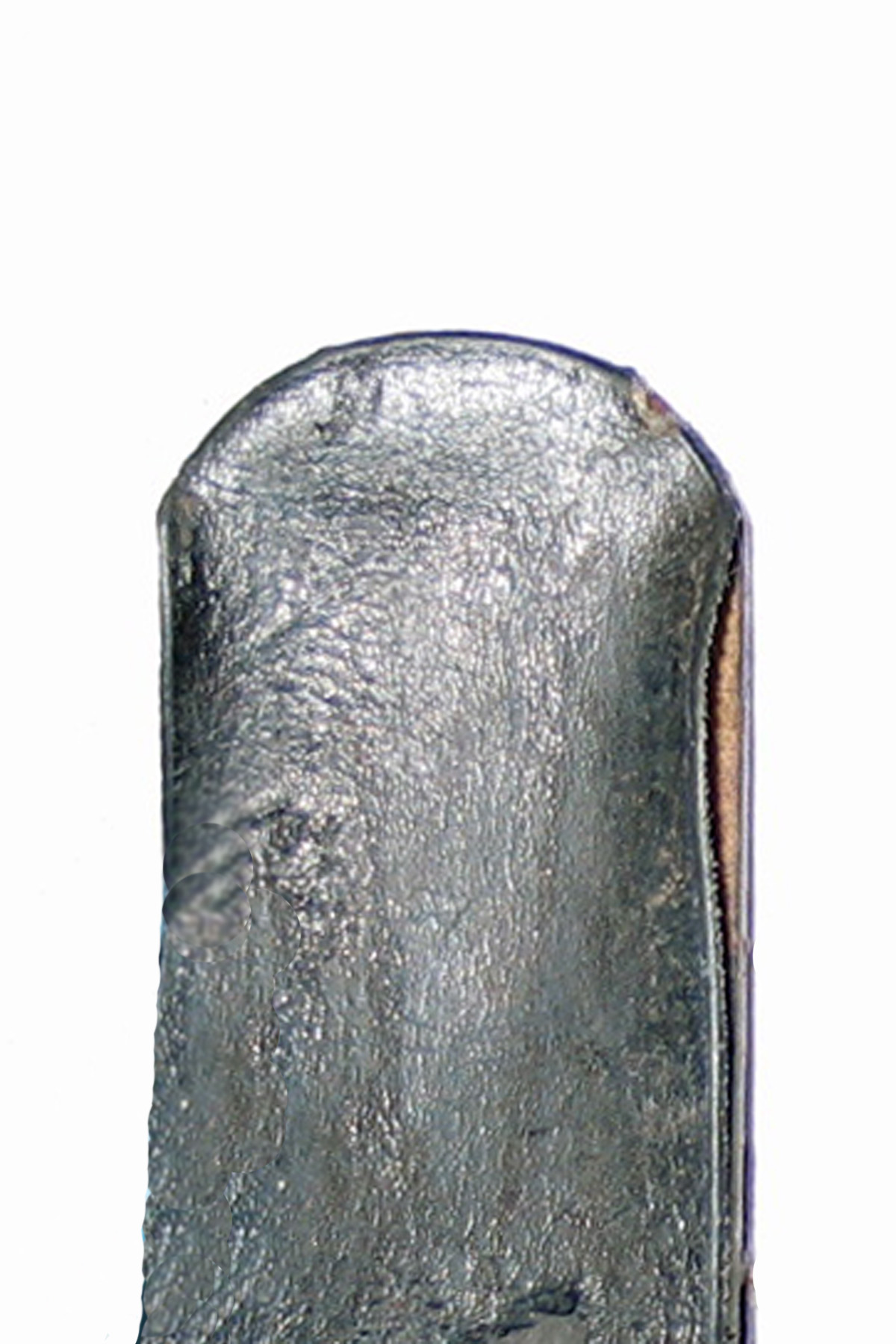 The latest photos appear to show one end of the belt that appears worn and black. The other shows those same embossed letters on a brown side of the belt. The newer photos show more of the belt than the previously released picture.
