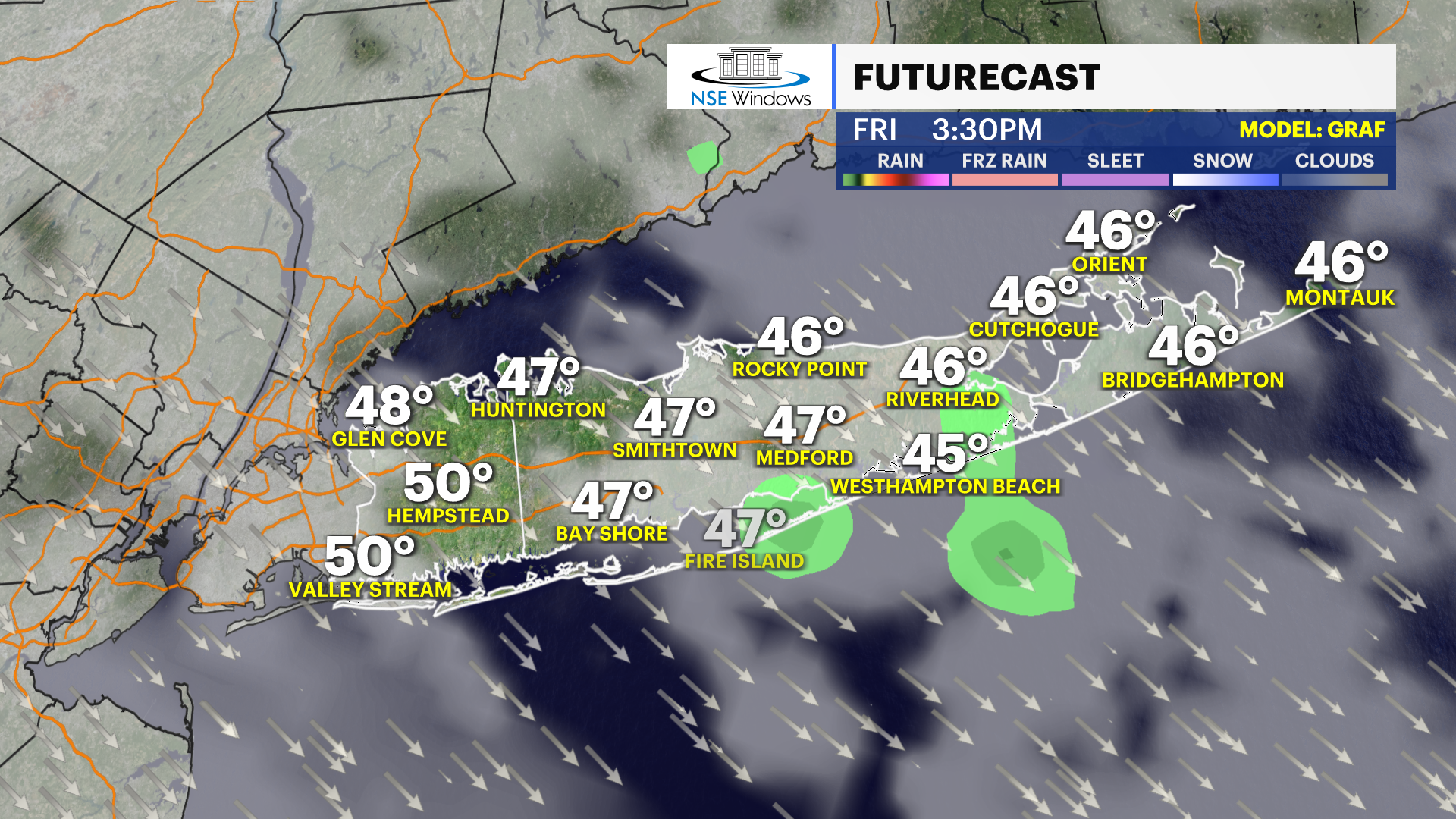 Friday: Sun and clouds, sight chance of passing afternoon shower. High near 51. West wind 10 to 20 mph.