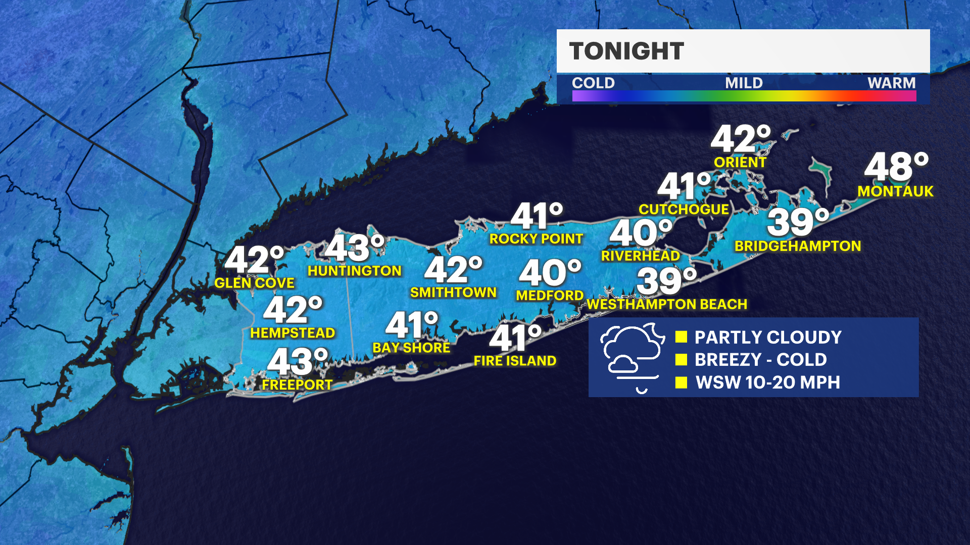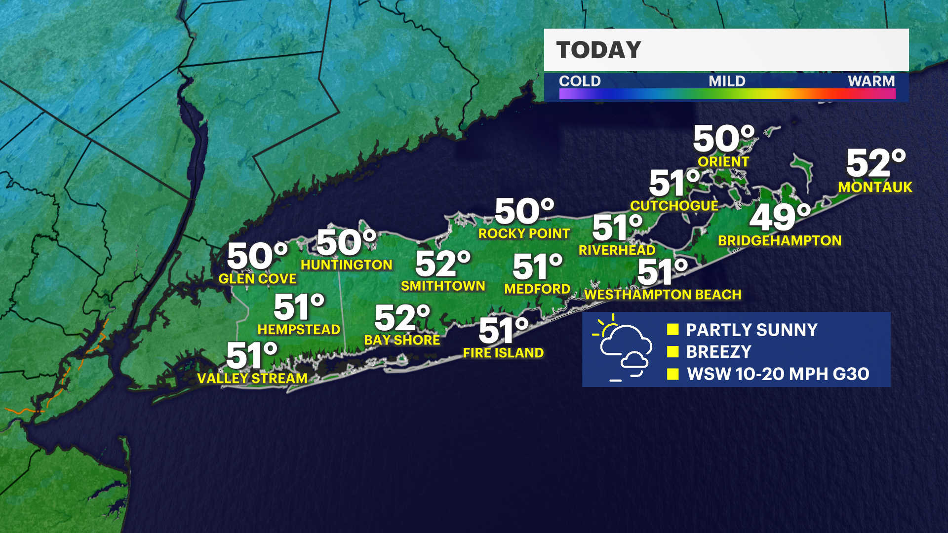Monday: Mostly sunny, with a high near 51. Breezy.