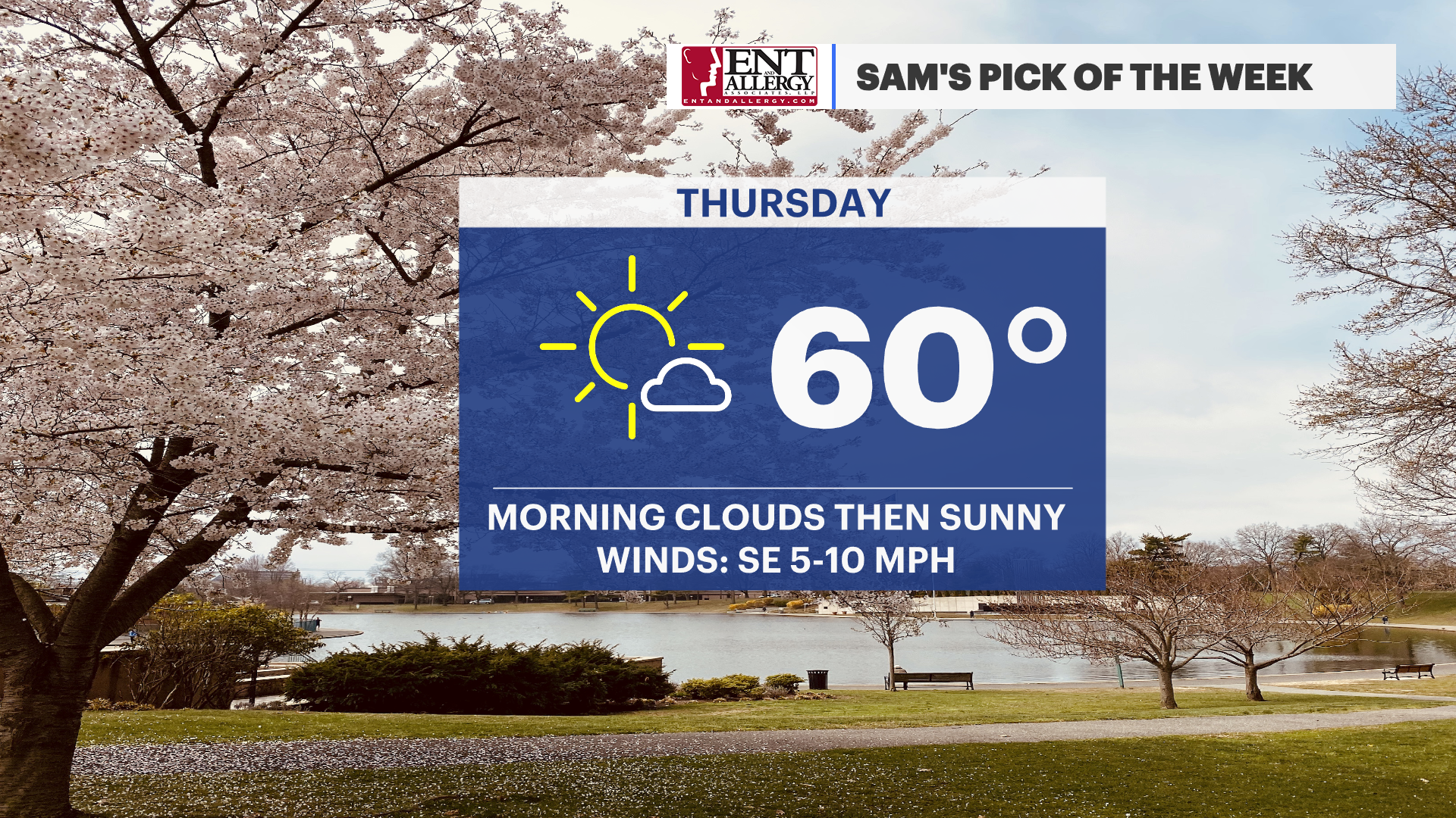 THURSDAY: Morning clouds give way to afternoon sun. Highs near 60. Lows near 44.
