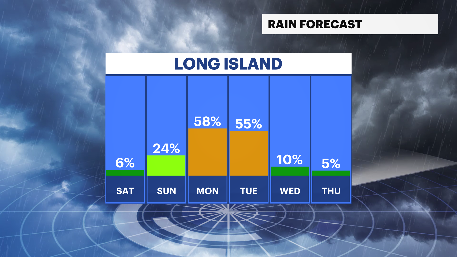 MONDAY: Mostly cloudy with the chance of rain showers, especially in the morning. Highs near 79. Lows near 68.