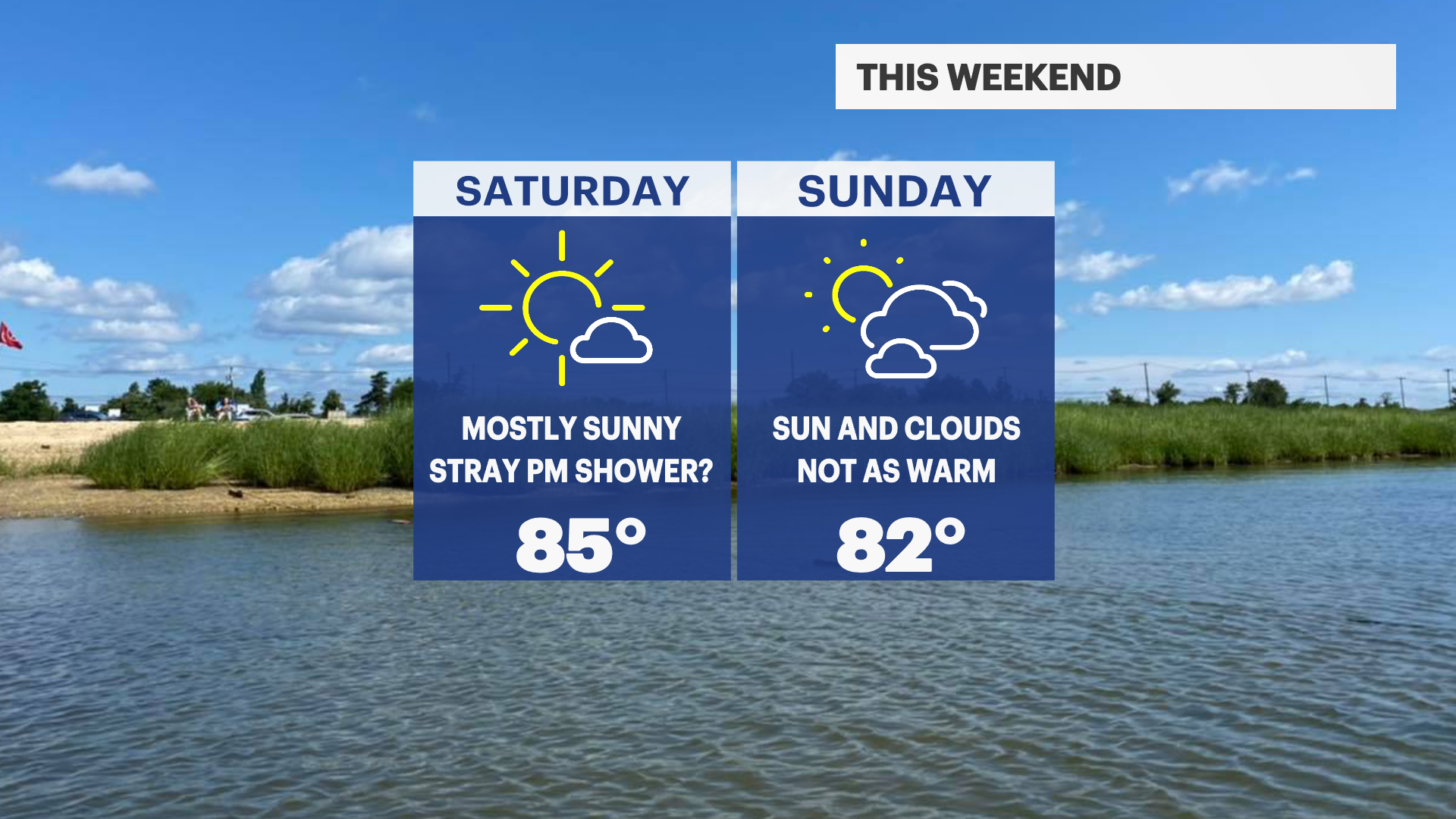 Storm Watch Team Meteorologist Sam Augeri says the weekend will consist of sun and clouds and it won't be as as warm or as humid.