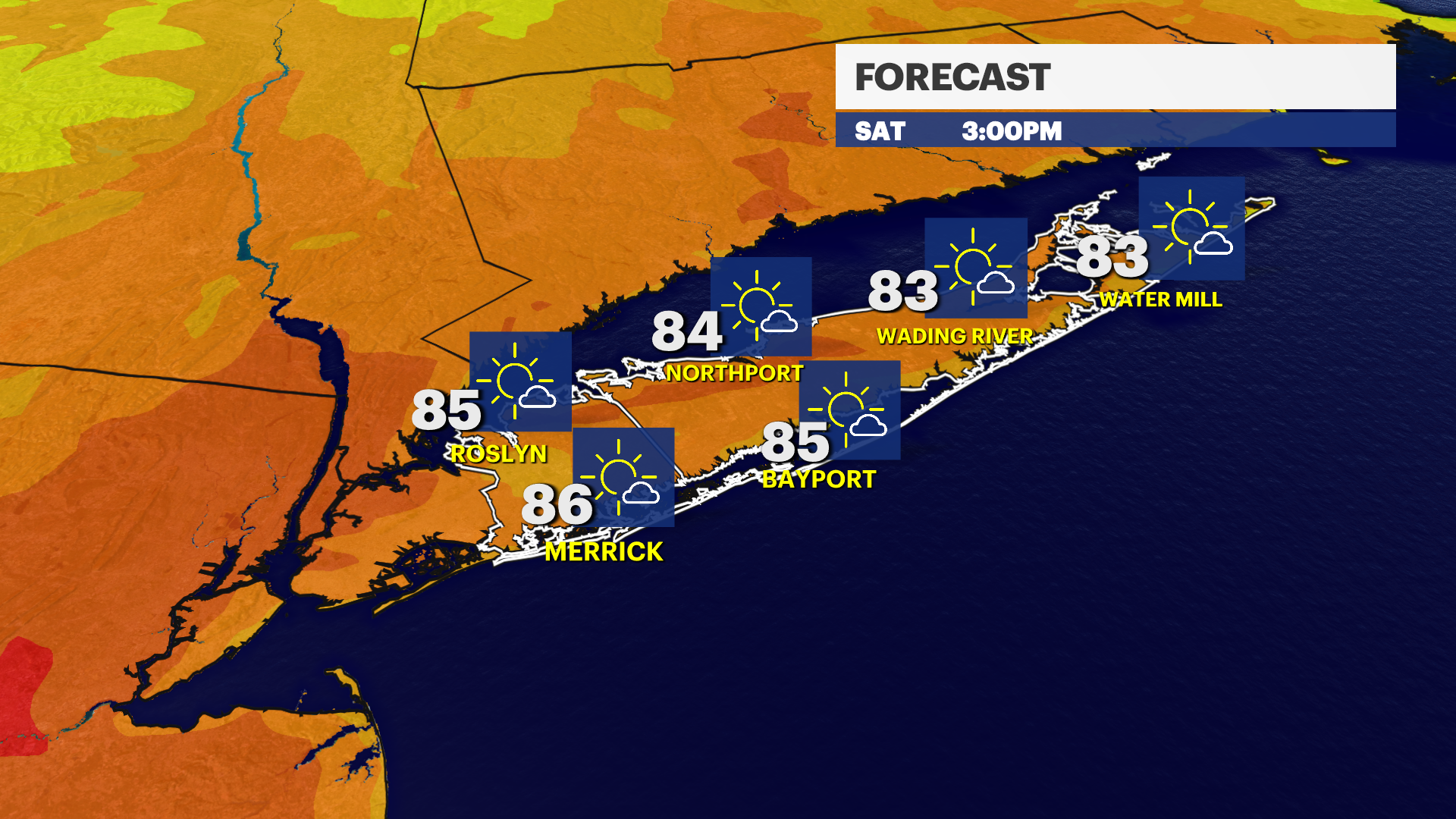 SATURDAY: Nice with sun and clouds. Slight chance of a stray shower during the afternoon. Highs near 85. Lows near 70. North to east winds 5 to 10 mph. Sunset: 7:32.