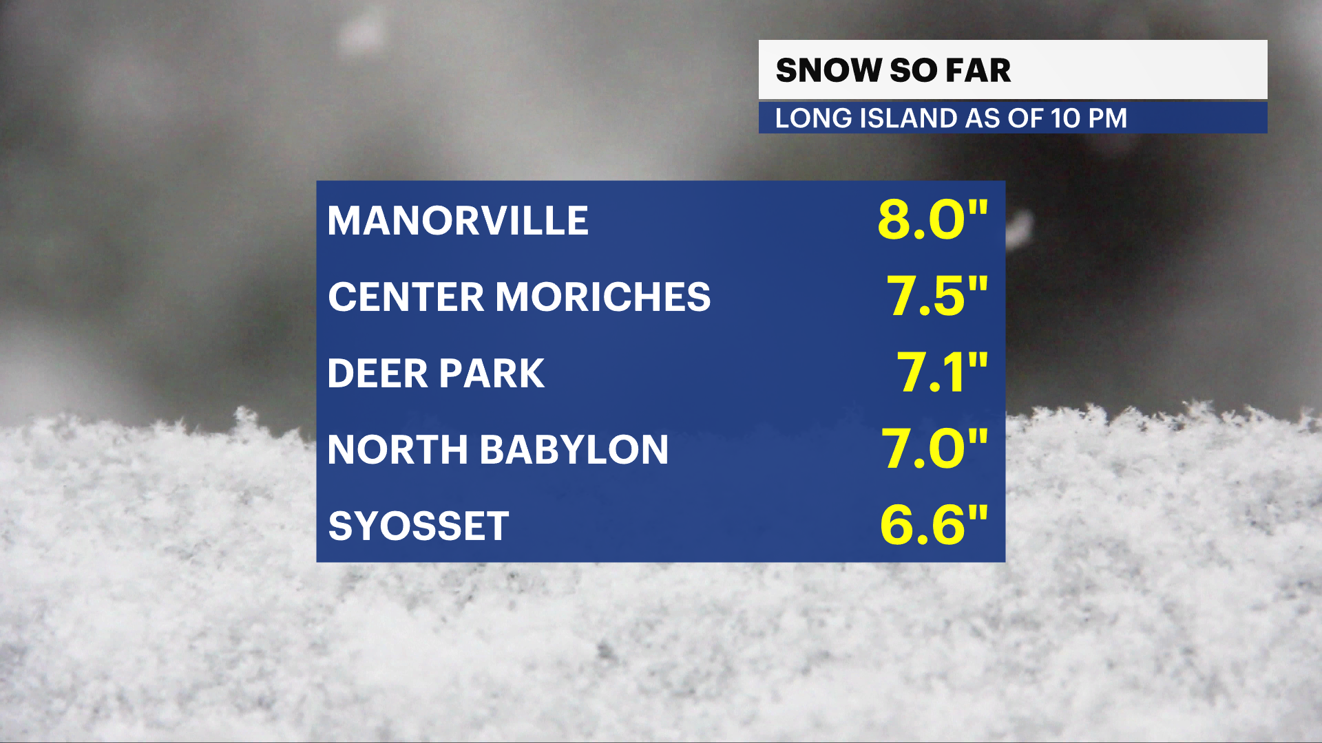 Snow totals as of 10 pm: