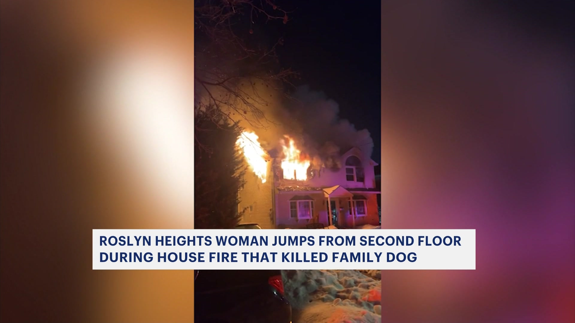 Woman jumps from second-floor window to escape Roslyn Heights fire that killed family dog