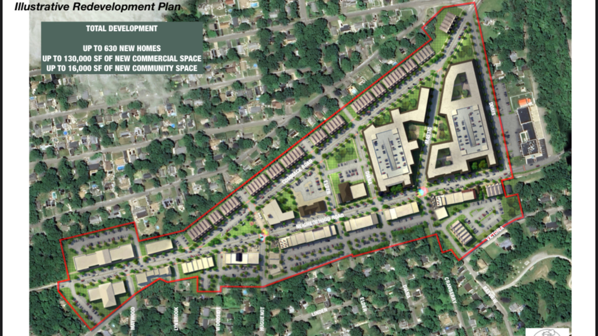 The $500 million plan, which covers most of Neighborhood Road and Commack Road between Maywood Road and Doris Drive, would create up to 630 new homes, up to 130,000 square feet of commercial space and 16,000 square feet of community space.