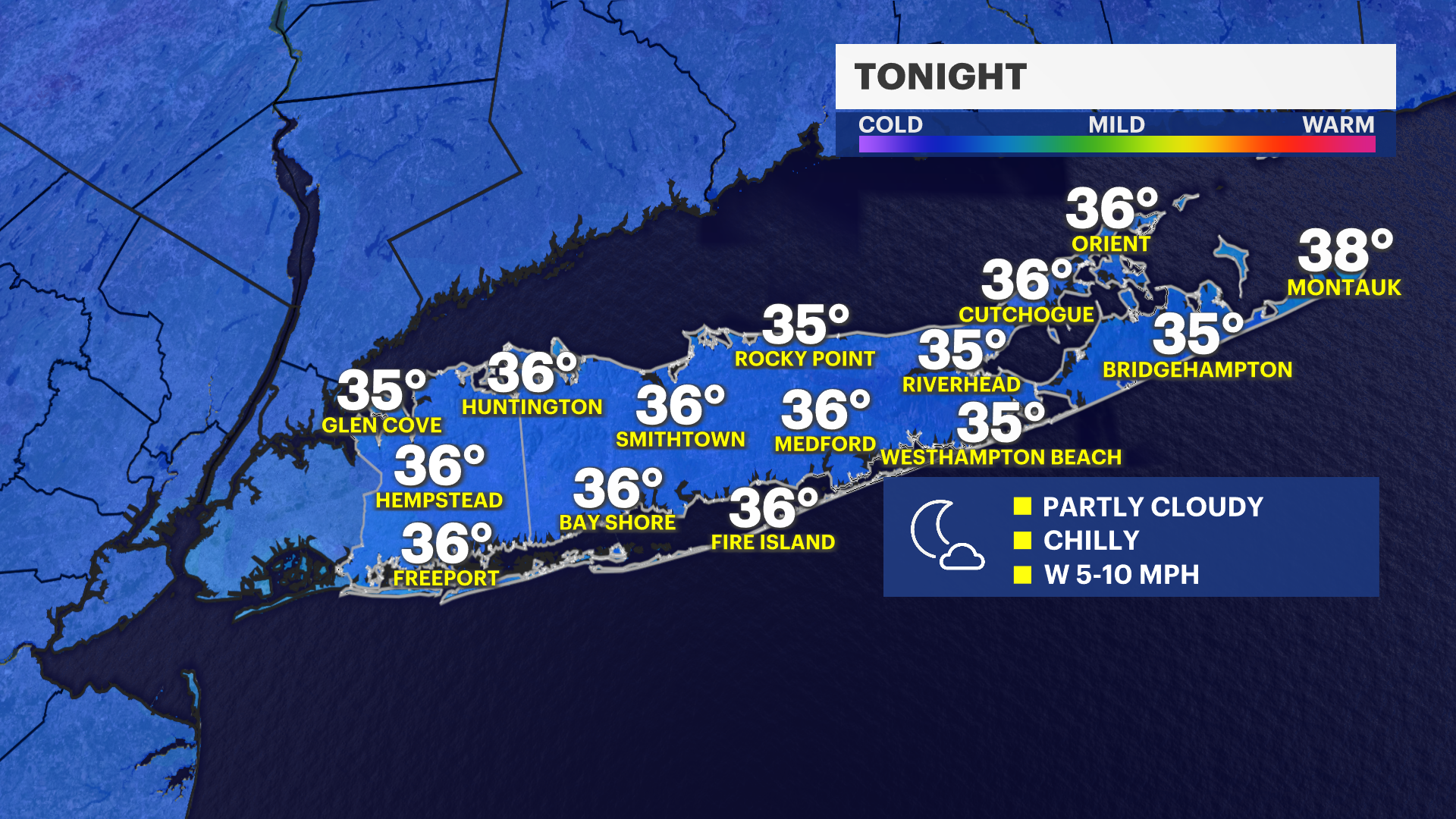 Thursday night: Clearing skies, turning colder. Low around 22.