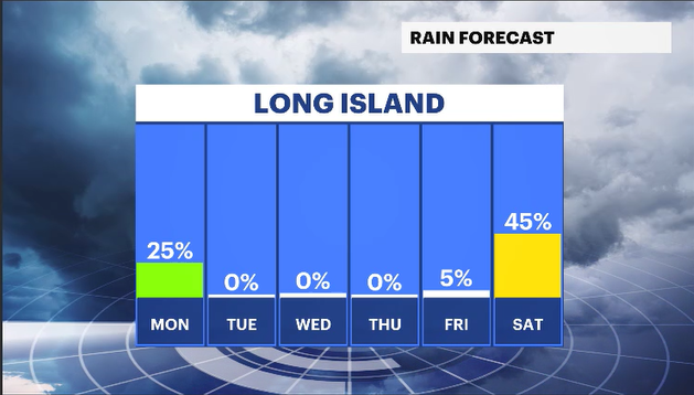 MONDAY: Mostly cloudy, cool, with a chance for afternoon rain showers, mainly after 2 p.m. Rain will end in the evening, and skies will clear at night. Highs in the upper 50s. Lows in the mid-40s.