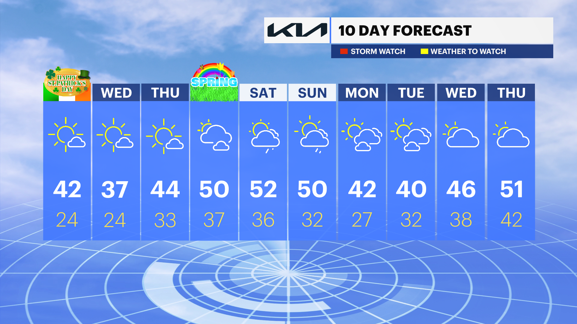 Looking ahead to St. Patrick’s Day, the weather improves, but it will feel brisk. Mostly sunny skies return on Tuesday, though it will remain breezy through much of the day. Despite the sunshine, colder air and lingering winds will keep wind chills in the 30 to 35 degree range, so if you're heading out to celebrate, make sure to bundle up.