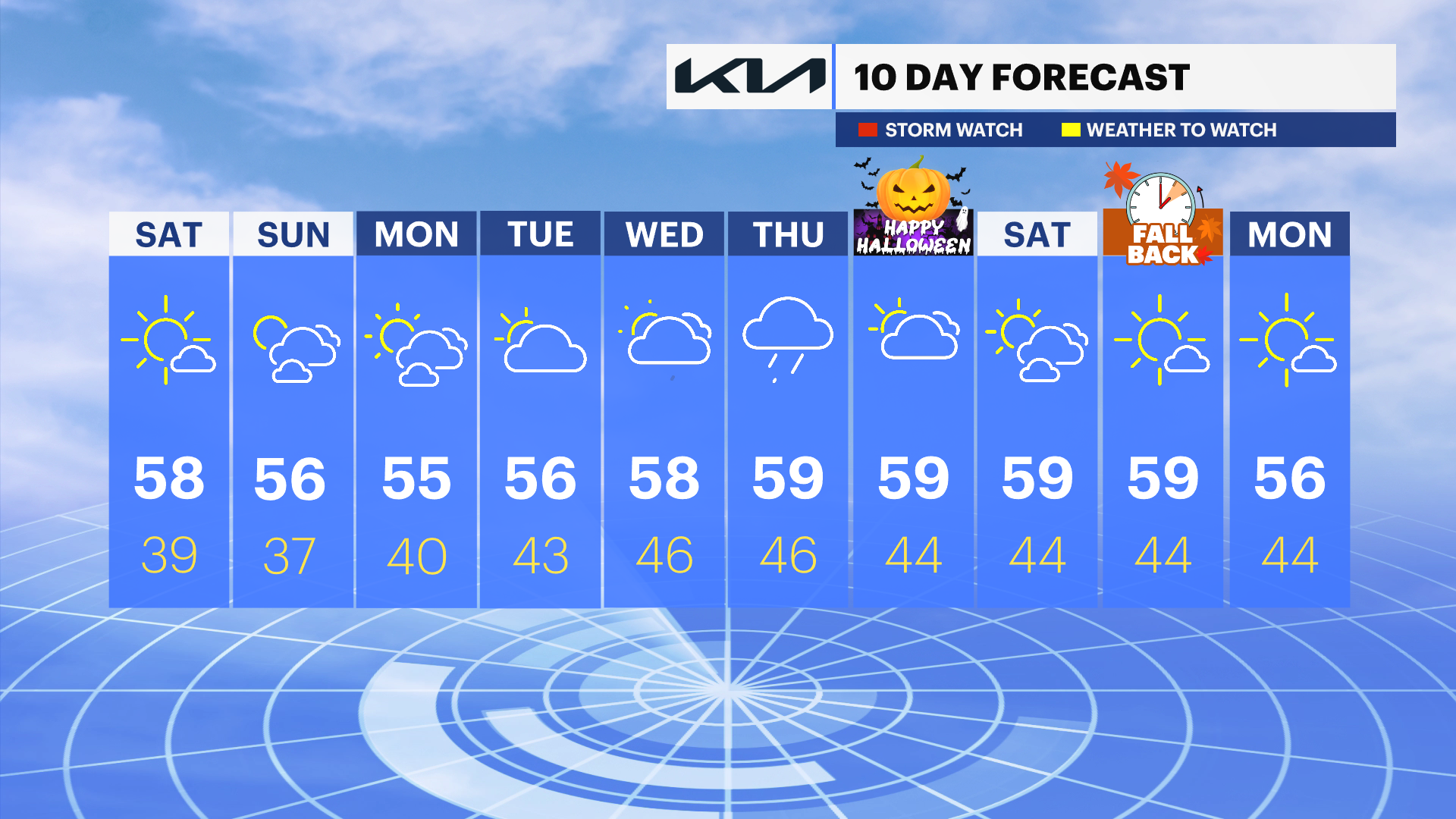 Autumn lovers, this is your weekend! Fall foliage is at its best color of the season across the island and temperatures are cool and crisp with a low risk for rain. Cool temperatures remain through our first weekend of November, but we have rain in the forecast that could linger for Halloween on Friday. The average high is in the low 60s, but temperatures will likely remain below that for at least the next 10 days. Here's a day-by-day breakdown.