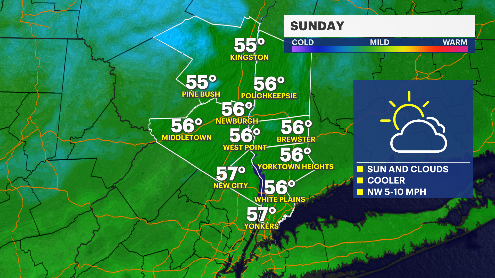 Note: Sunday night will be our coldest night so far this season. This will likely be the first frost of the season for some neighborhoods in Westchester and Rockland County, although neighborhoods in the lower Hudson Valley near Yonkers and along the Hudson River / the Long Island Sound could remain frost-free for a little longer.