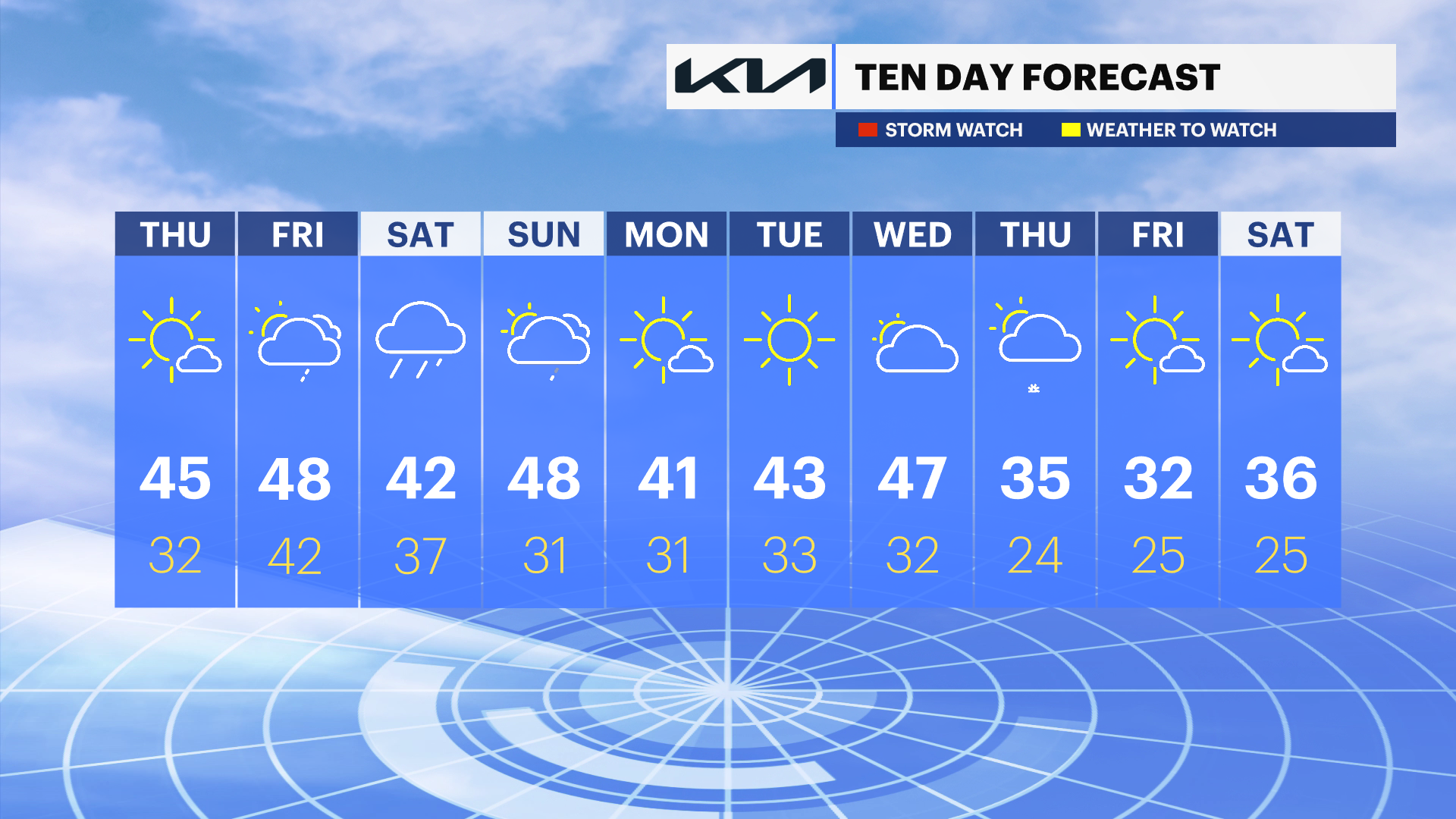 For the end of the week, grab the umbrella. We have showers on Friday evening, Saturday, and Sunday morning. Temperatures will remain well above average with no freezes expected until Monday.